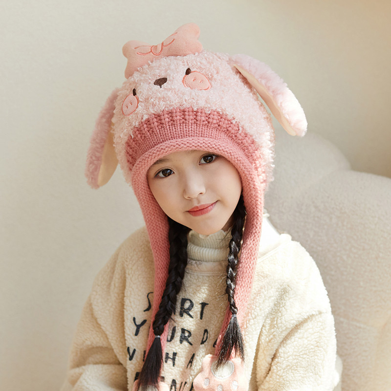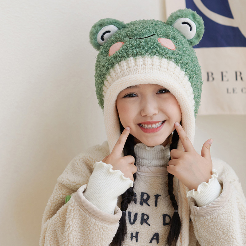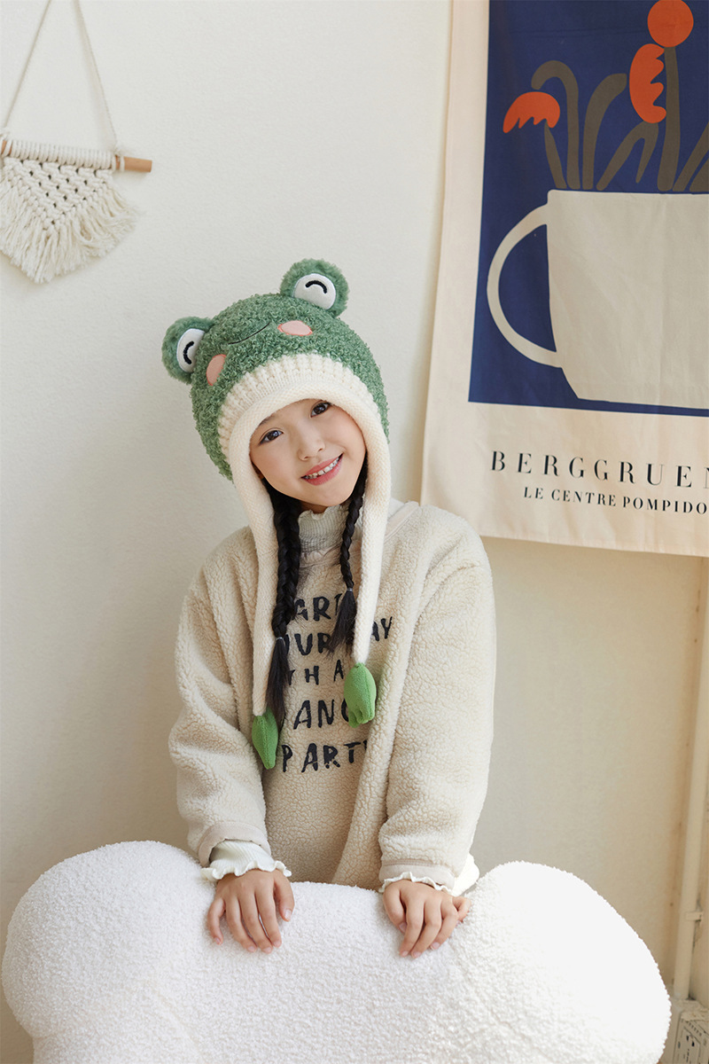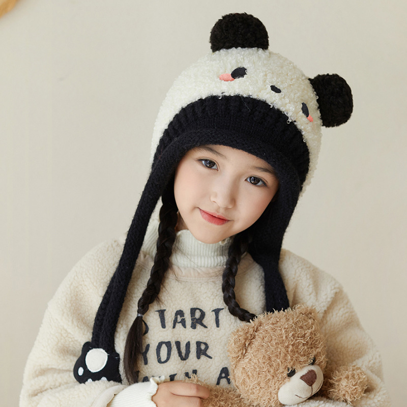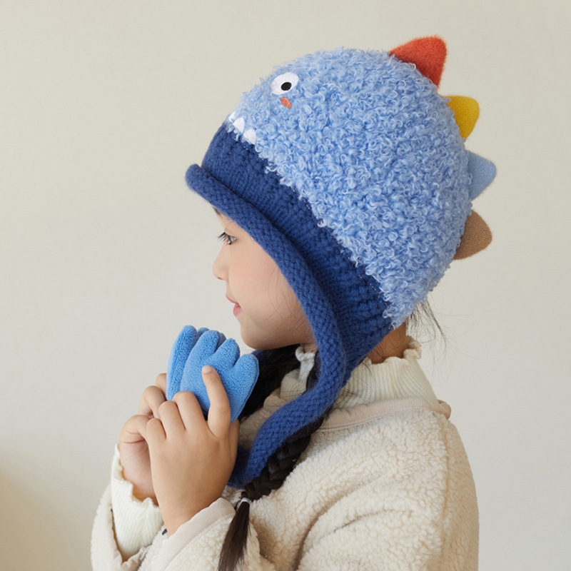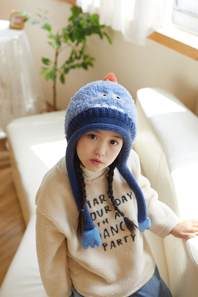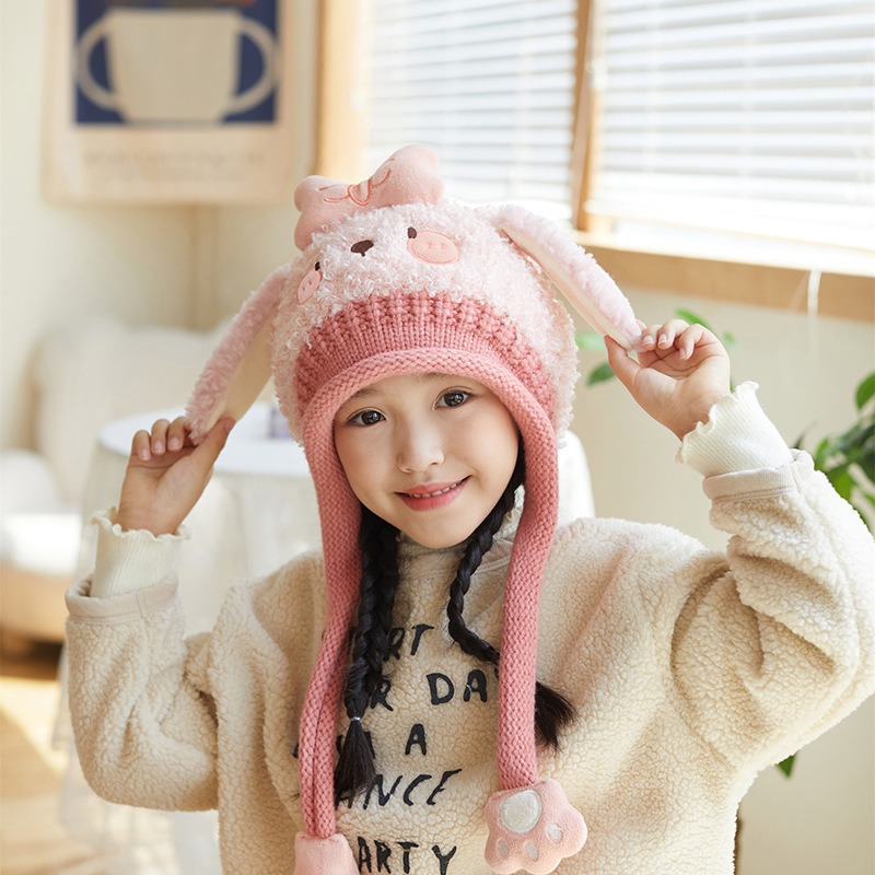 새로운 가을 겨울 아기 모자, 끈이 달린 귀 보호 모자, 털이 있는 따뜻하고 방풍 기능이 있는 귀여운 동물 어린이 니트 모자