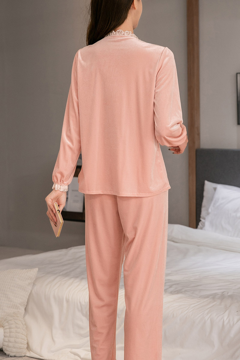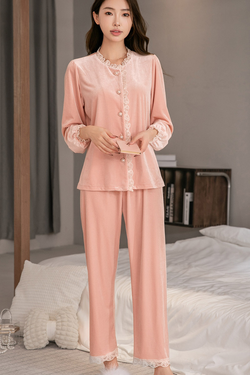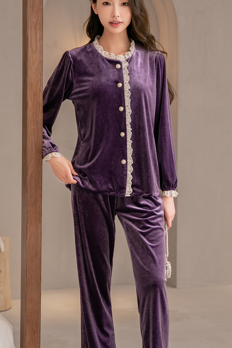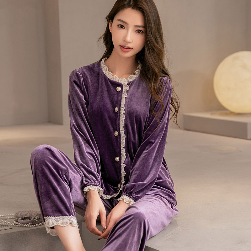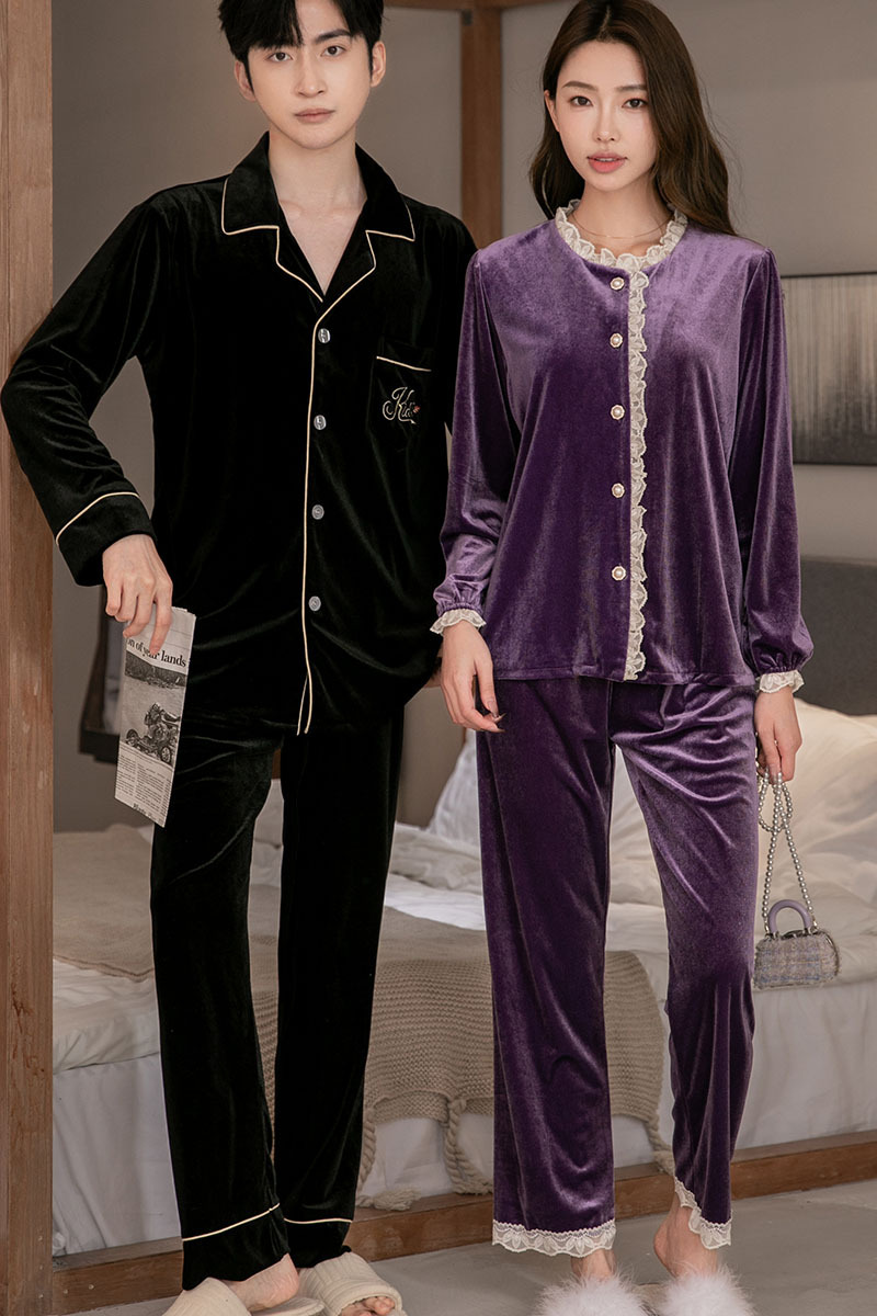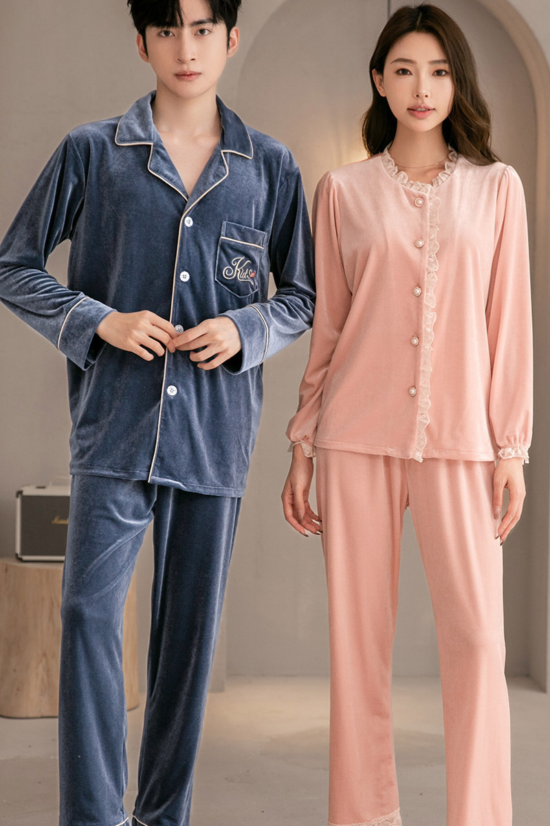 2023 가을과 겨울 새로운 골드 벨벳 커플 잠옷 여성용 투피스 세트 남성용 고급 센스 홈 옷은 외부에서 착용 가능
