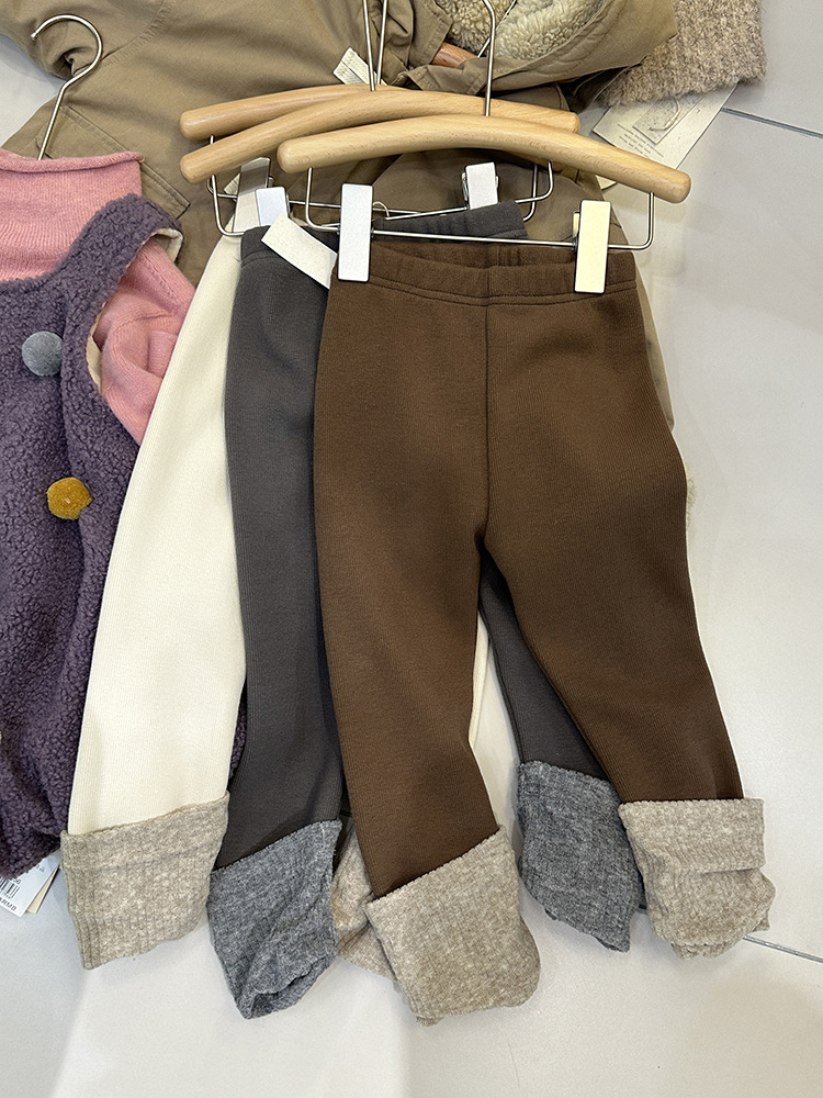 2023 가을/겨울 새로운 기모 두꺼운 여아 레깅스 가을/겨울 조커 우아한 웨스턴 스타일 캐주얼 따뜻한 아기 바지