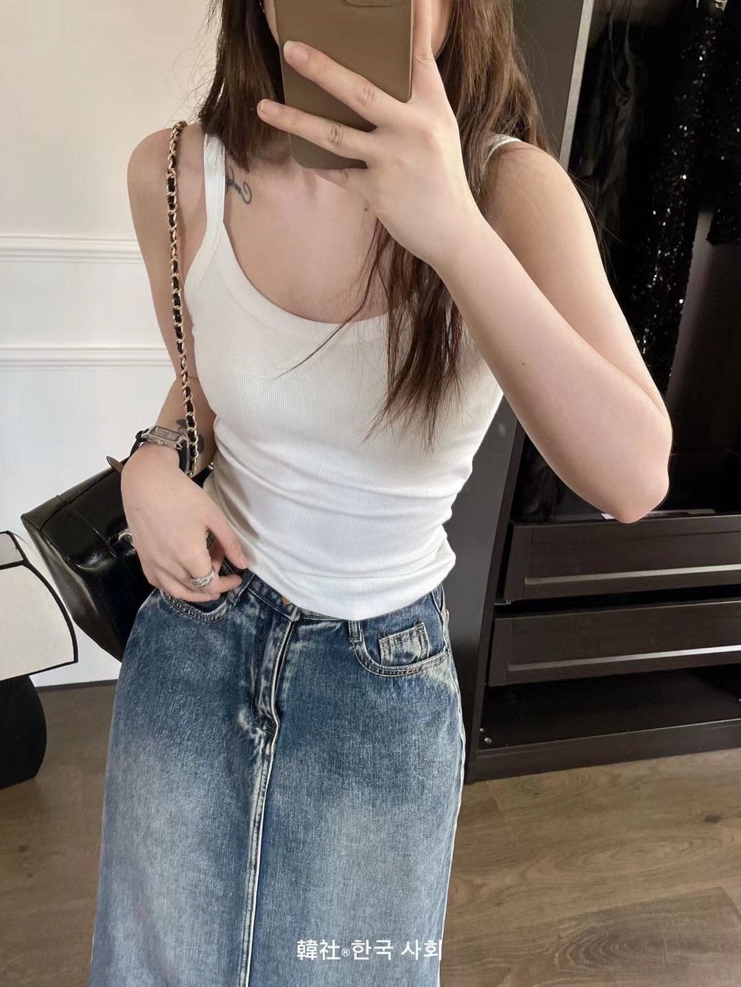 한국식 가을 올매치 원피스 캐미솔 여성용 벨트 가슴 패드 여성용 슬림핏 베이스 탑 착용 아름다운 등 내부 착용스토어 가기