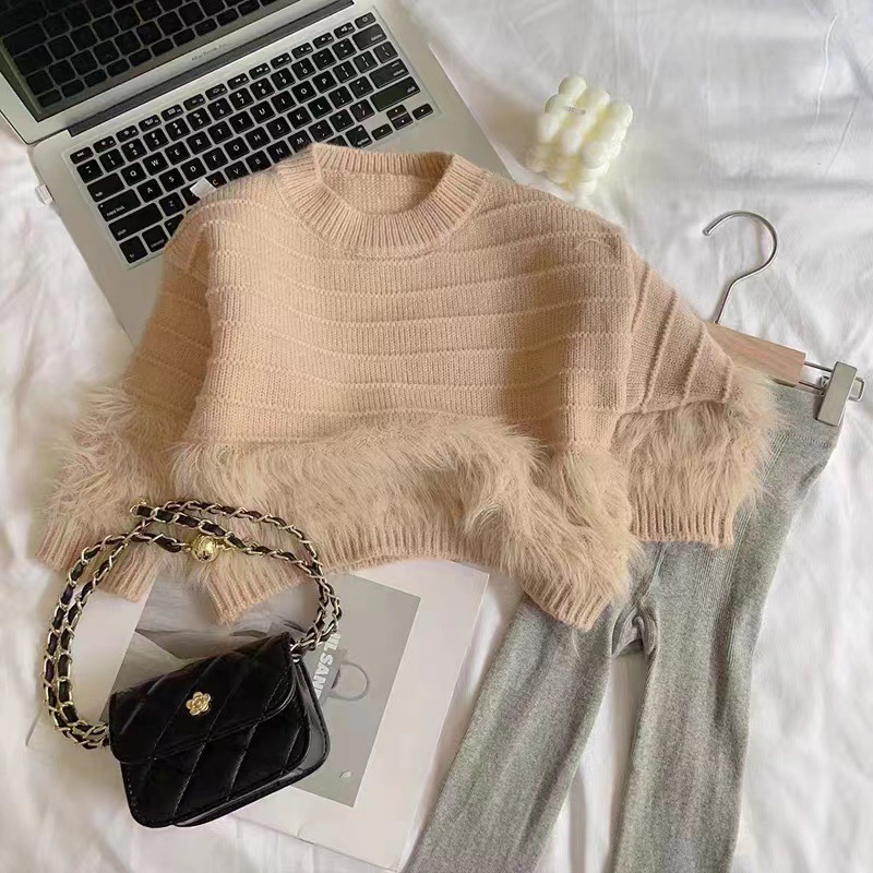 여아 가을과 겨울 니트웨어 한국식 서양 단색 바다 말 헤어 풀오버 아기 겨울 따뜻한 모든 매치 스웨터 트렌디스토어 가기
