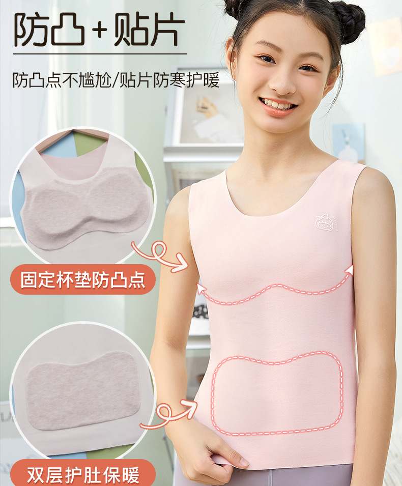 여아 가을 옷 따뜻한 조끼 여아 속옷 십대 착용 De Rong 중학교 학생 고정 컵 개발 기간