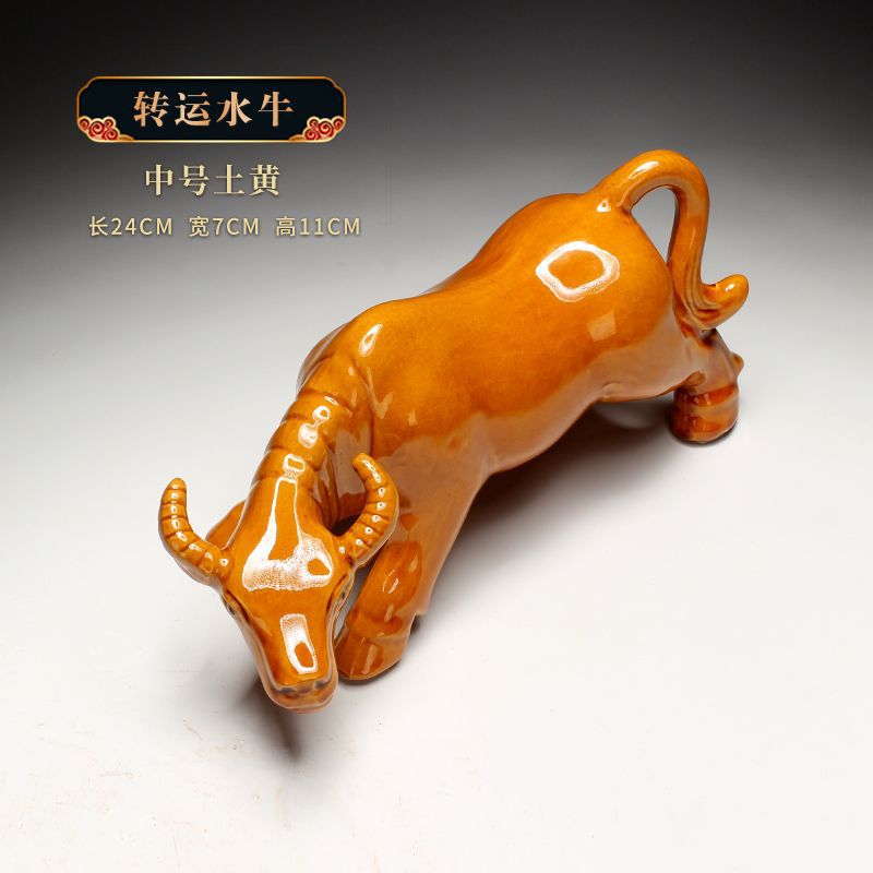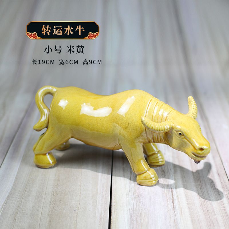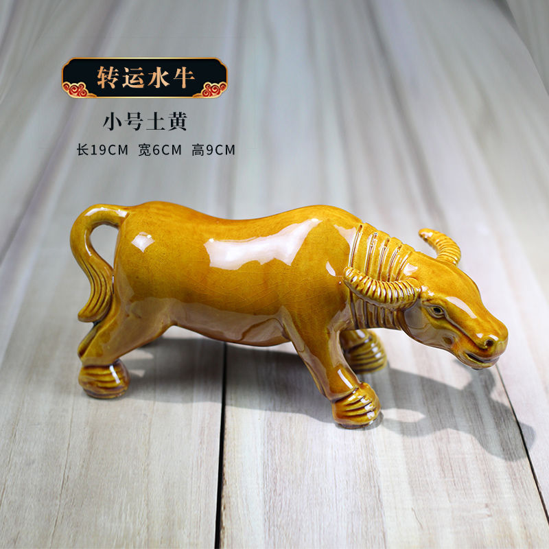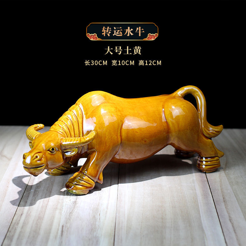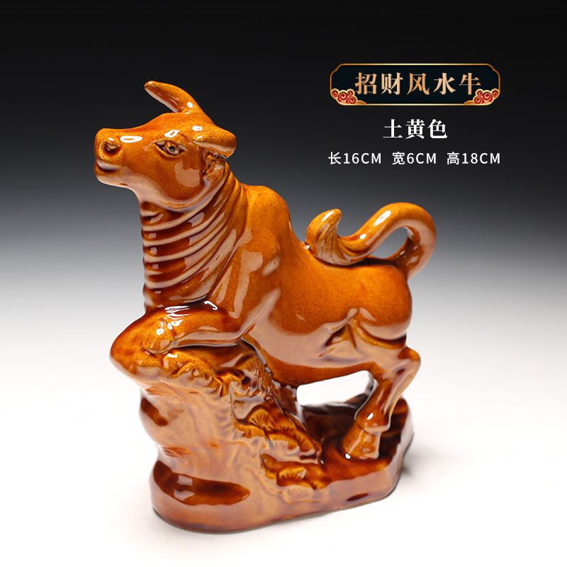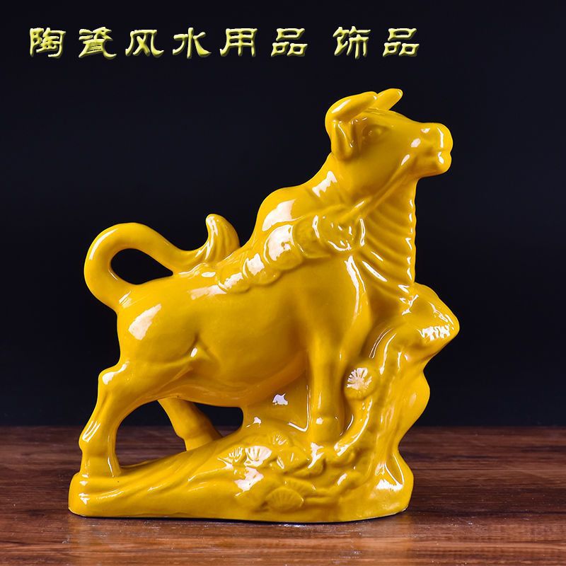 세라믹 암소 장식품 잠자는 소 뿔이있는 장식품 Tang Sancai 노란색 소 풍수 장식품 홈 장식 조디악