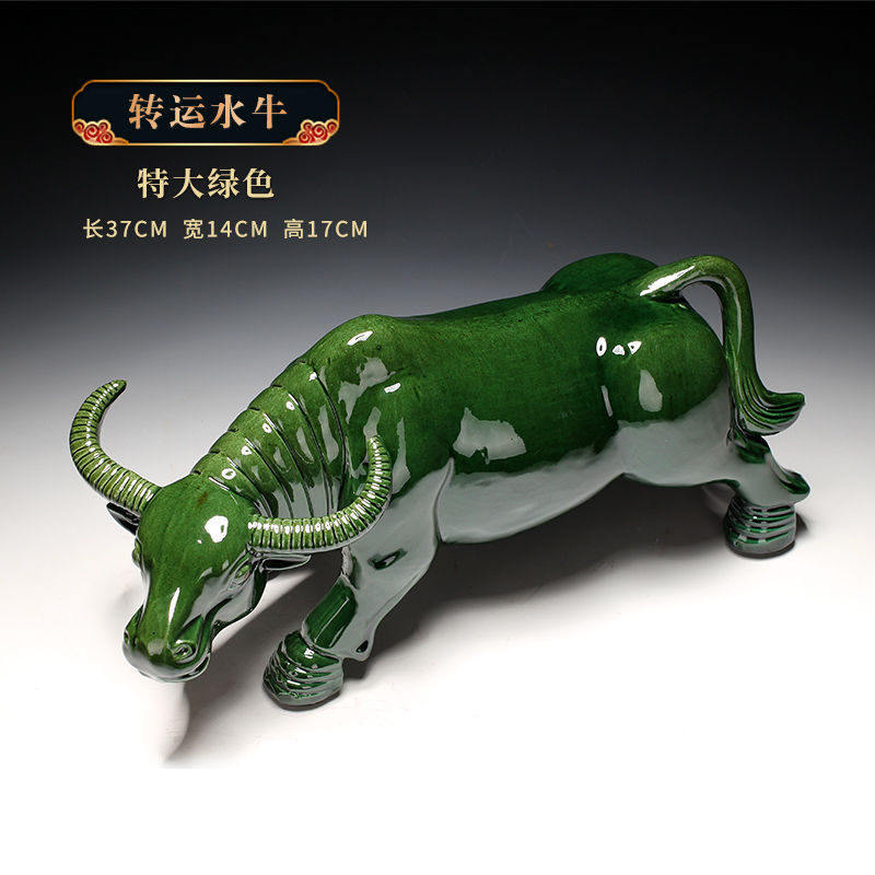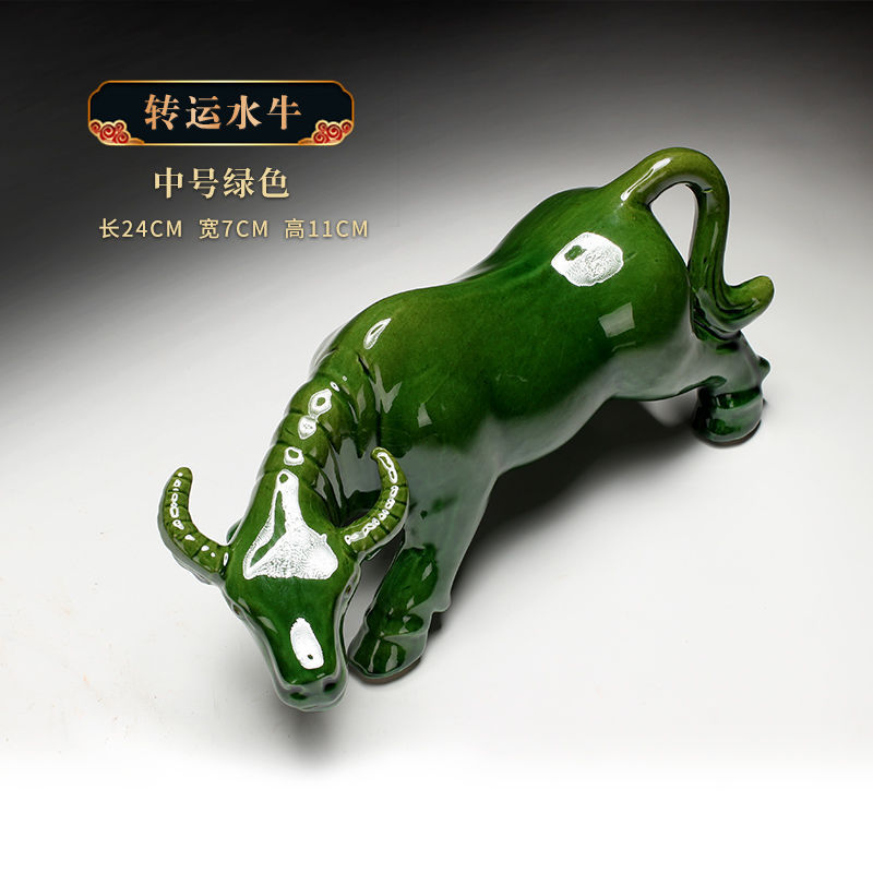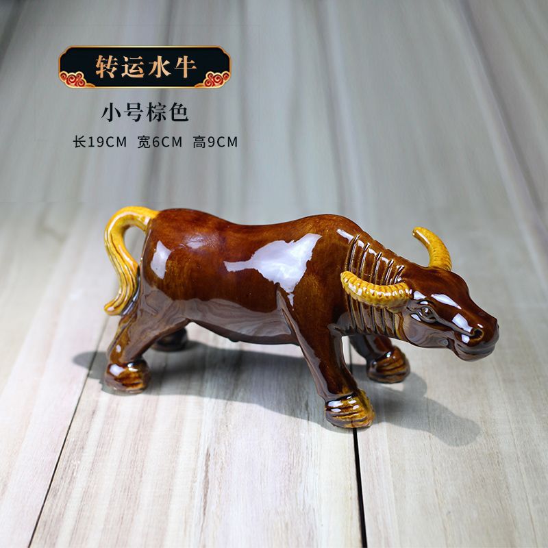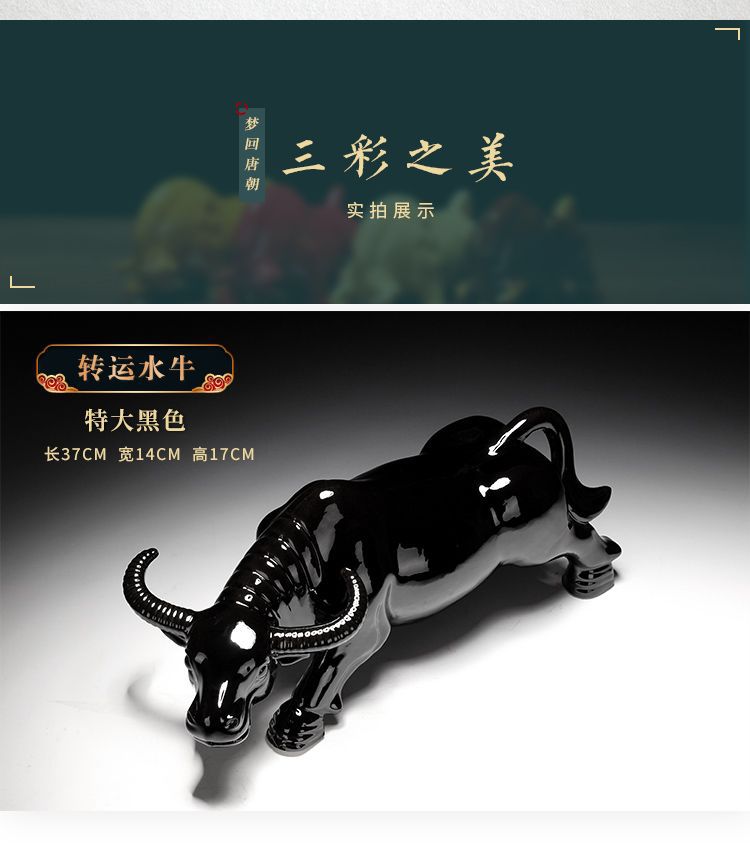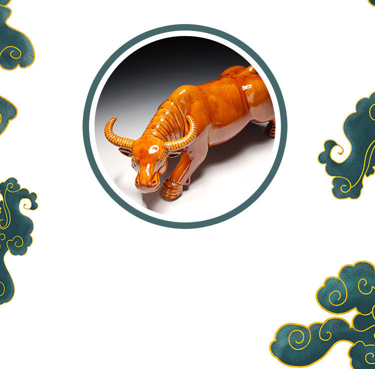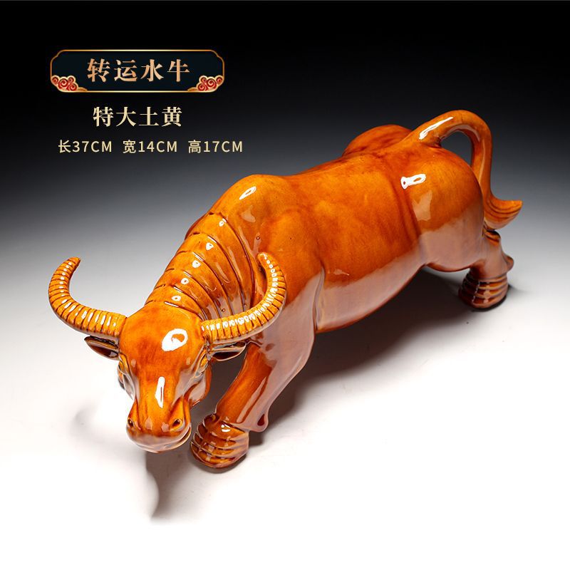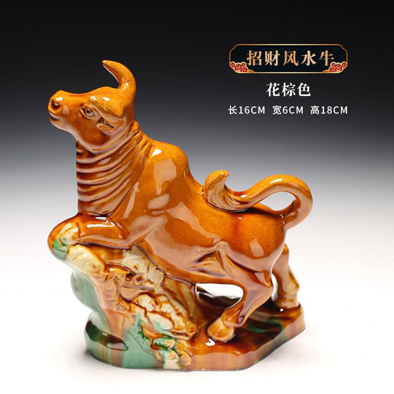 세라믹 암소 장식품 잠자는 소 뿔이있는 장식품 Tang Sancai 노란색 소 풍수 장식품 홈 장식 조디악