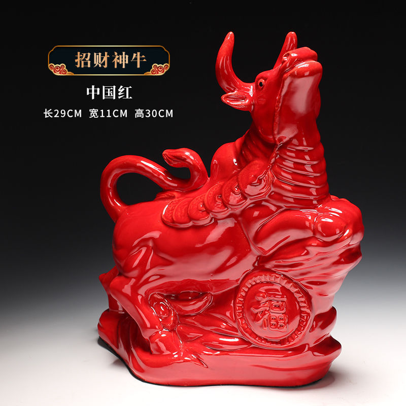 • 행운의 신 암소 중국 붉은 길이 29 너비 11 높이 30