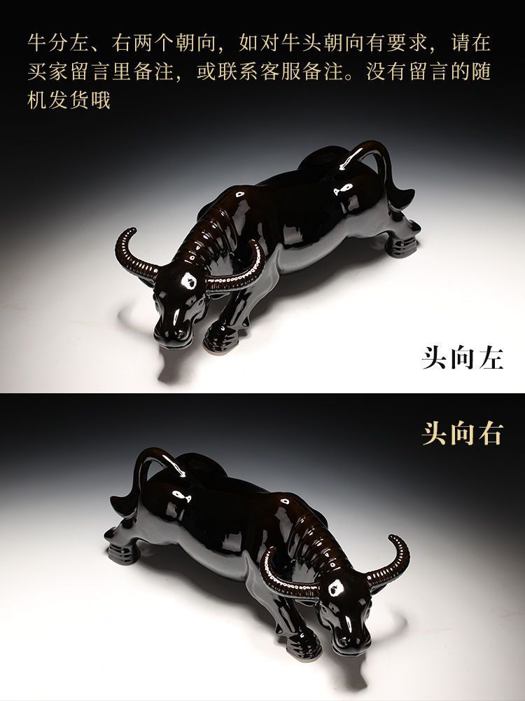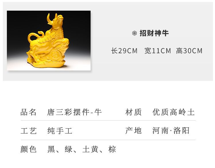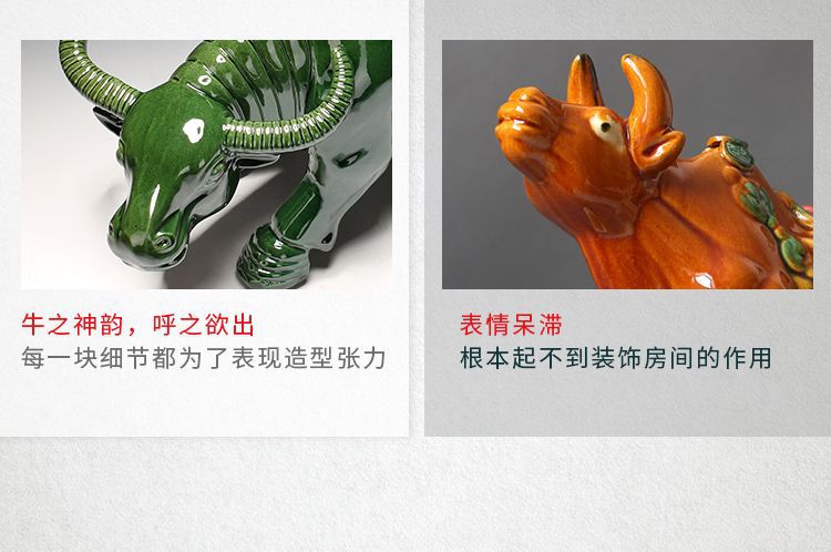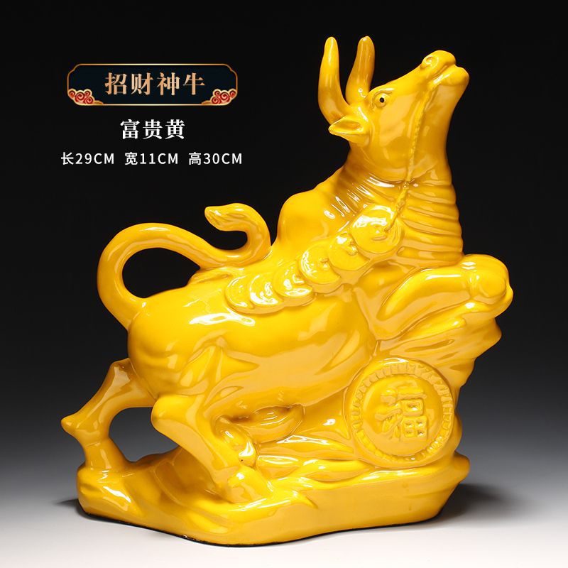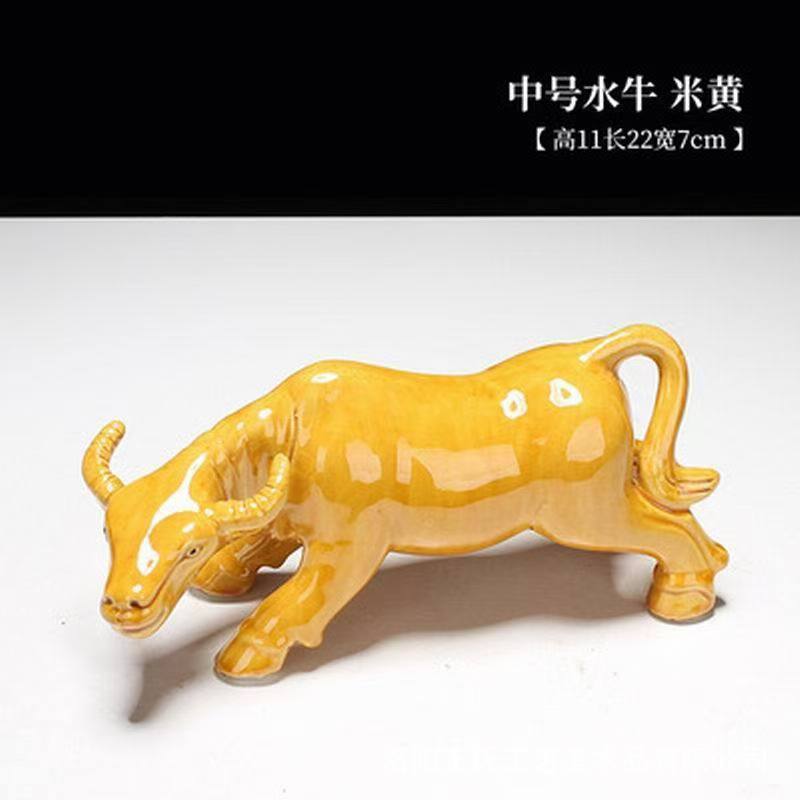 세라믹 암소 장식품 잠자는 소 뿔이있는 장식품 Tang Sancai 노란색 소 풍수 장식품 홈 장식 조디악스토어 가기