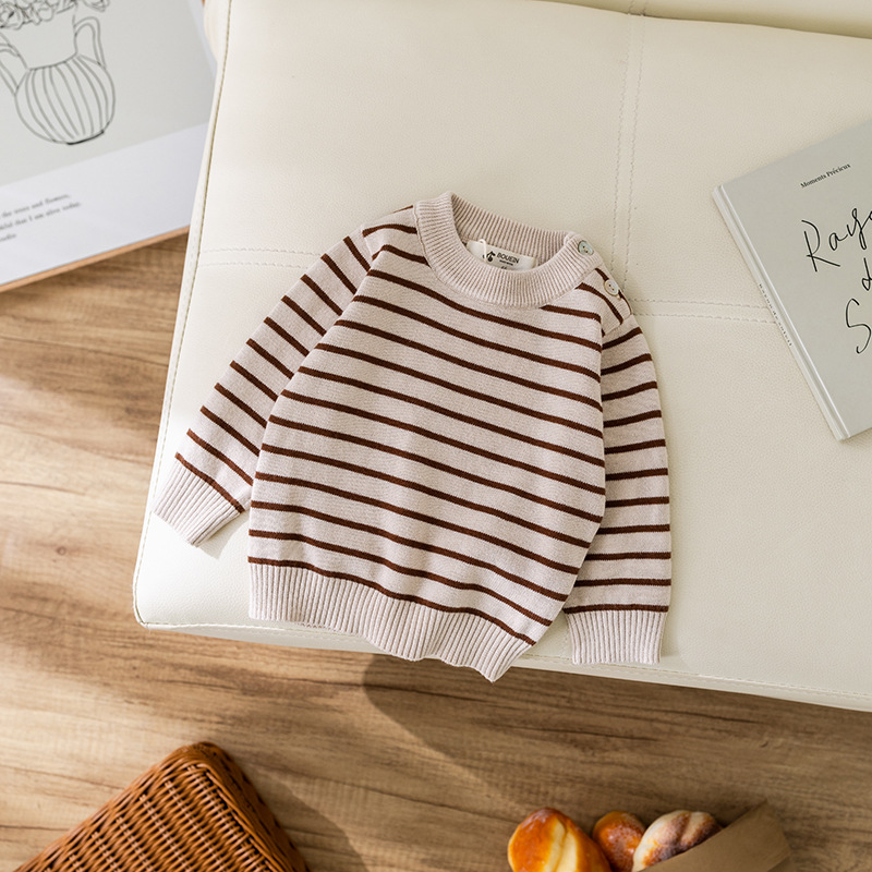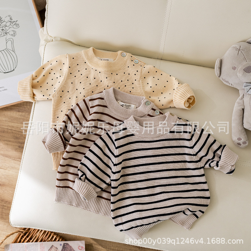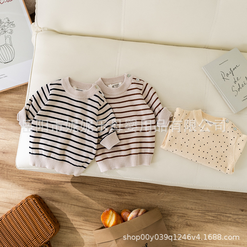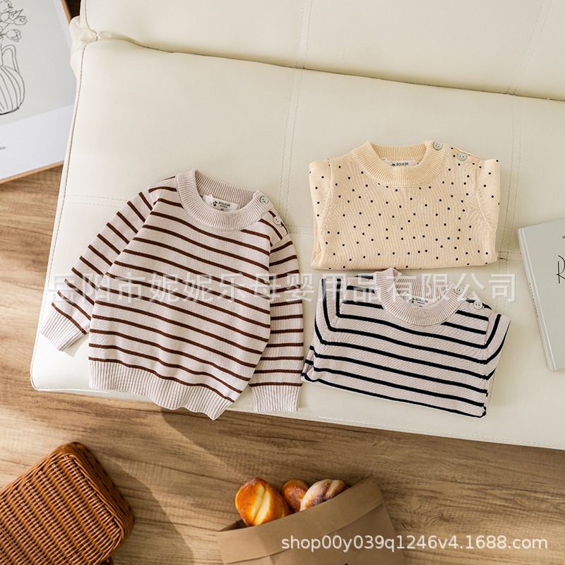 아기 스웨터 가을과 겨울 바닥 풀오버 소년과 소녀를위한 니트웨어 크루넥 의류 아기 봄과 가을 겉옷 긴 소매 탑스토어 가기
