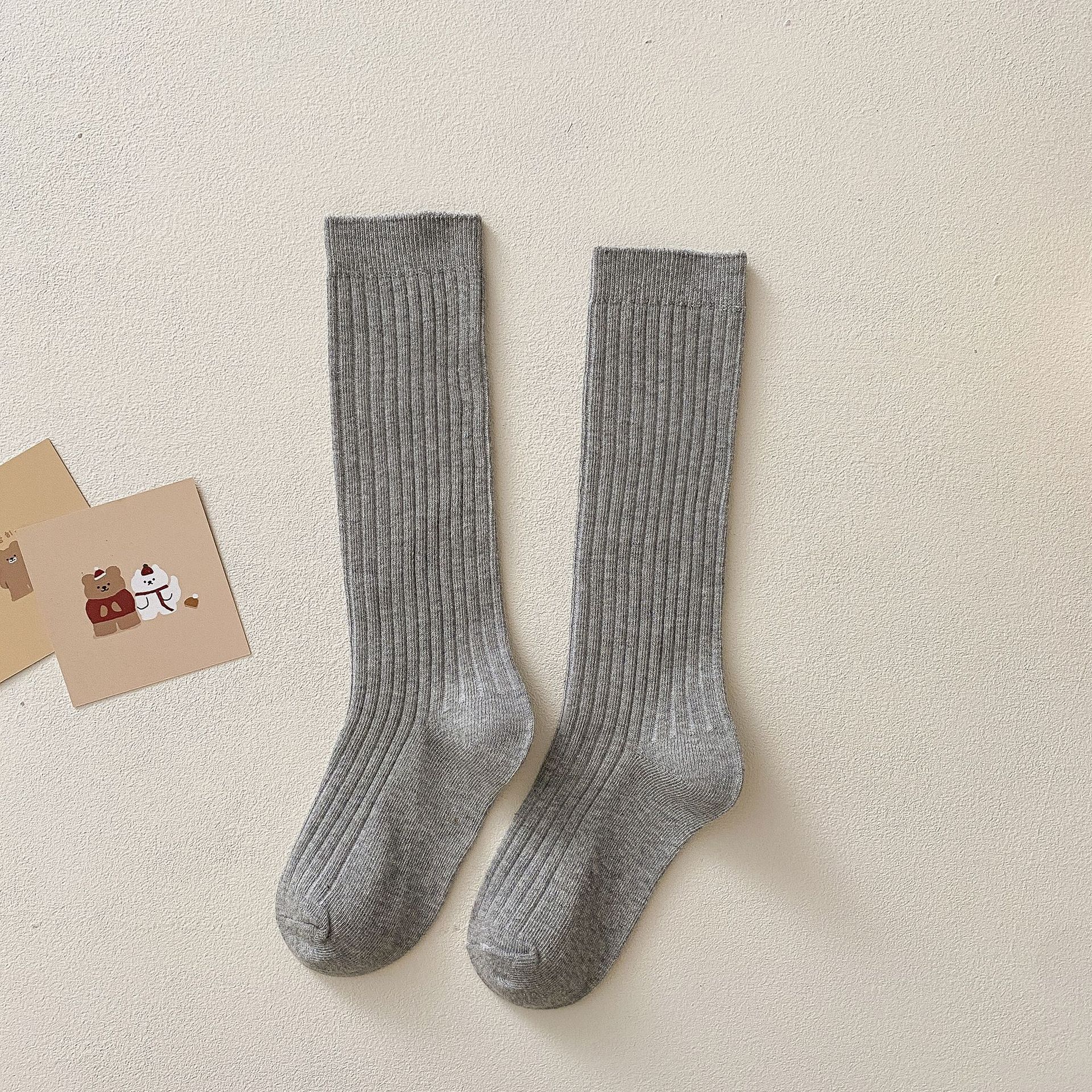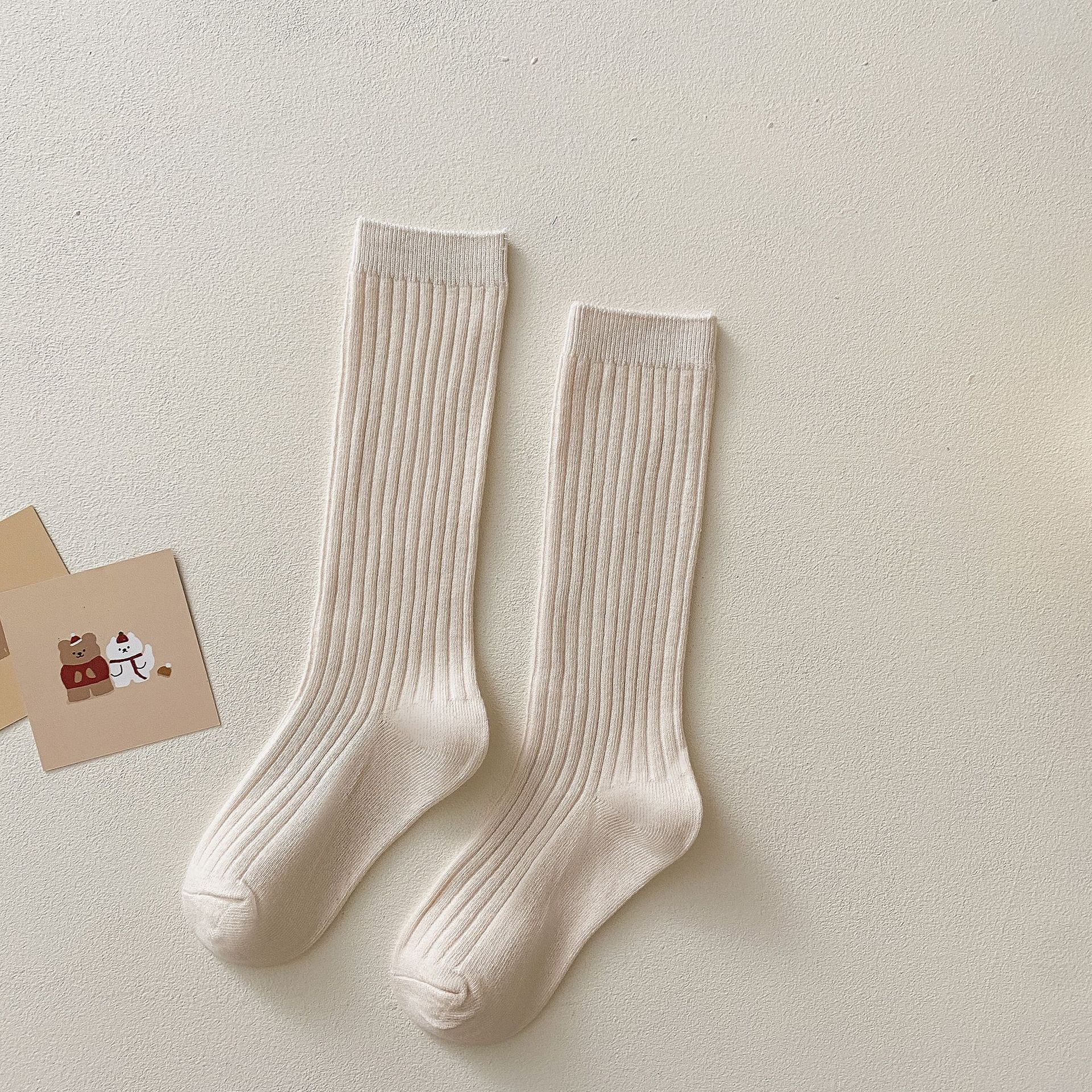 한국식 단색 중간 길이 양말 단색 세로 줄무늬 쌓기 양말 단색 여아 얕은 양말 어린이 양말