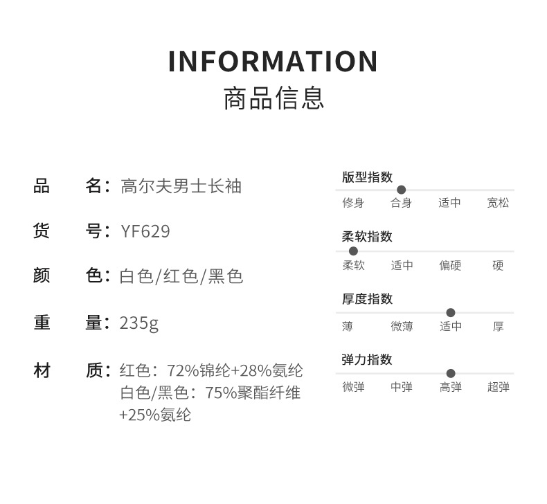 名 称高尔夫男士长袖码 数M/L/XL/XXL