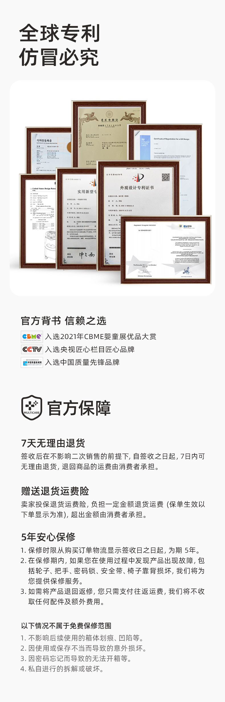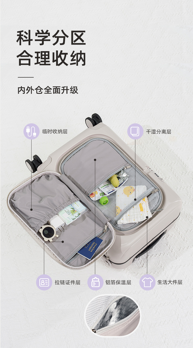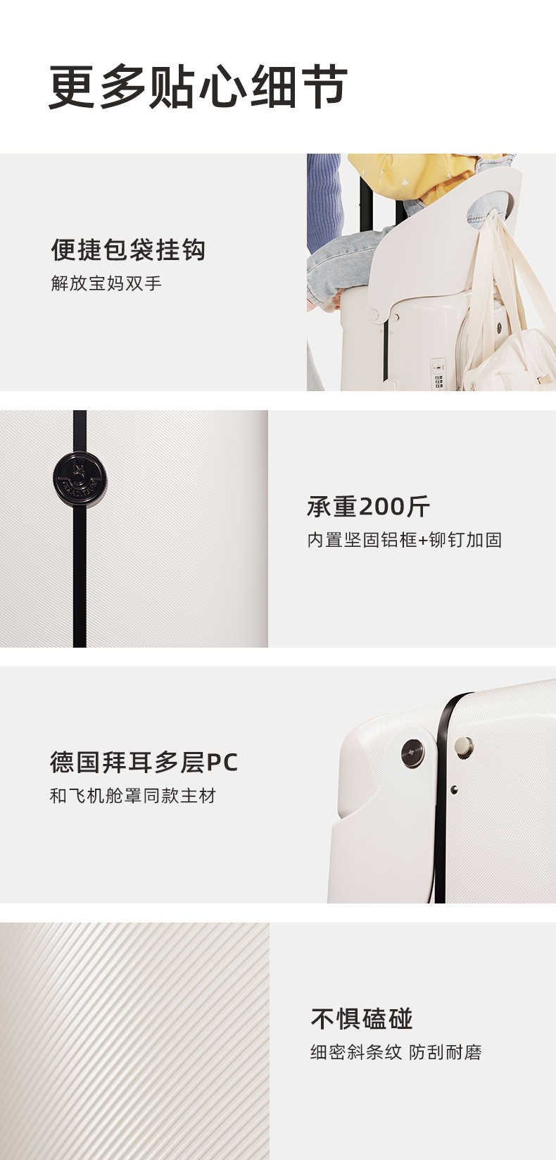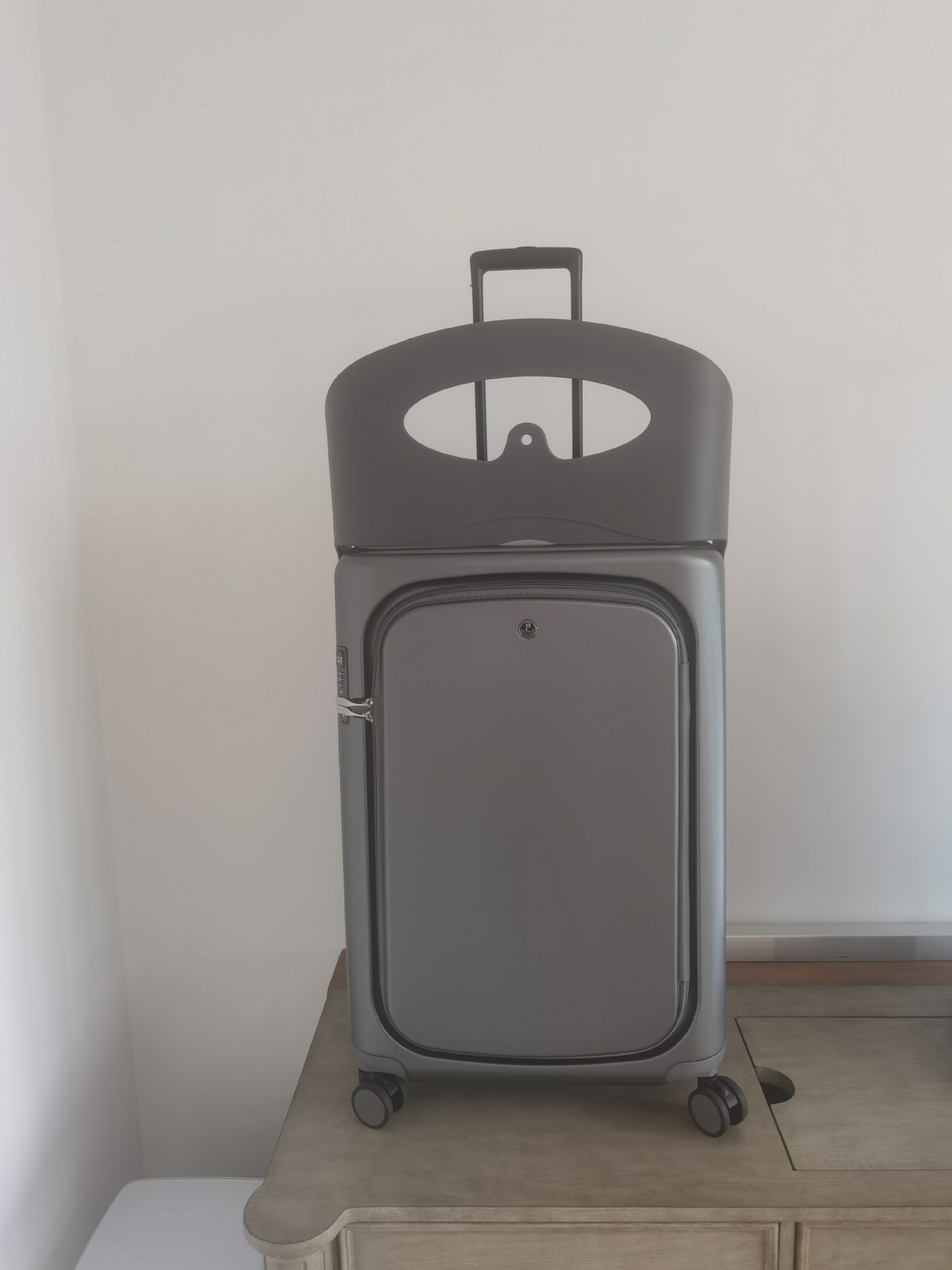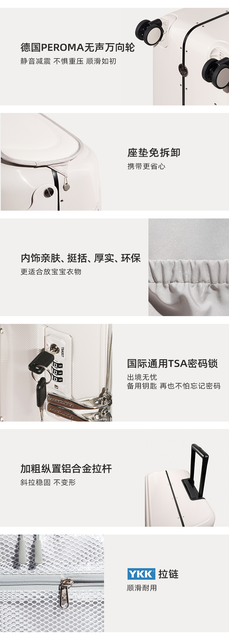 9-侧手把在箱子左侧更方便提箱子。通常大部分都是右手推箱子,人在箱子左后侧,用户拿箱子时可直接弯腰就可以把箱子提起来,不用绕到箱子右侧或者把箱子转过来才能拿到手把;-侧手把在左侧也方便机场托运,提起箱子时箱子顶部直接朝前放置在登机柜台的传送带上(机场规定不能底部朝前);-箱子从左侧打开,也方便用户直接弯腰在左后侧打开箱子取物。