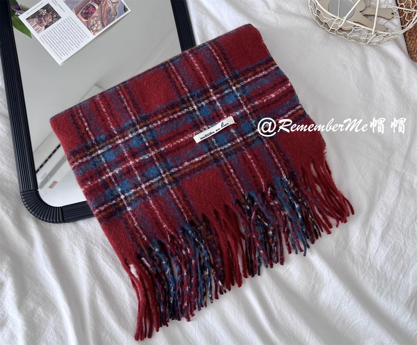 새로운 빨간 격자 무늬 스카프 여성의 가을과 겨울 고급 감각 두꺼운 따뜻한 크리스마스 선물 화이트 그린 모든 매치 스카프스토어 가기
