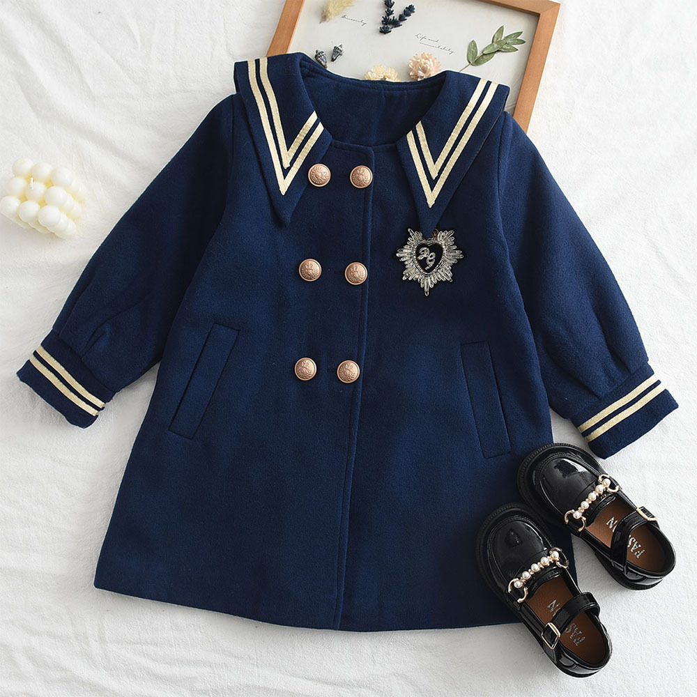 여아 모직 코트 긴 대학 스타일 가을과 겨울 네이비 스타일 코트 어린 소녀의 영국 코트 JK 아동복스토어 가기
