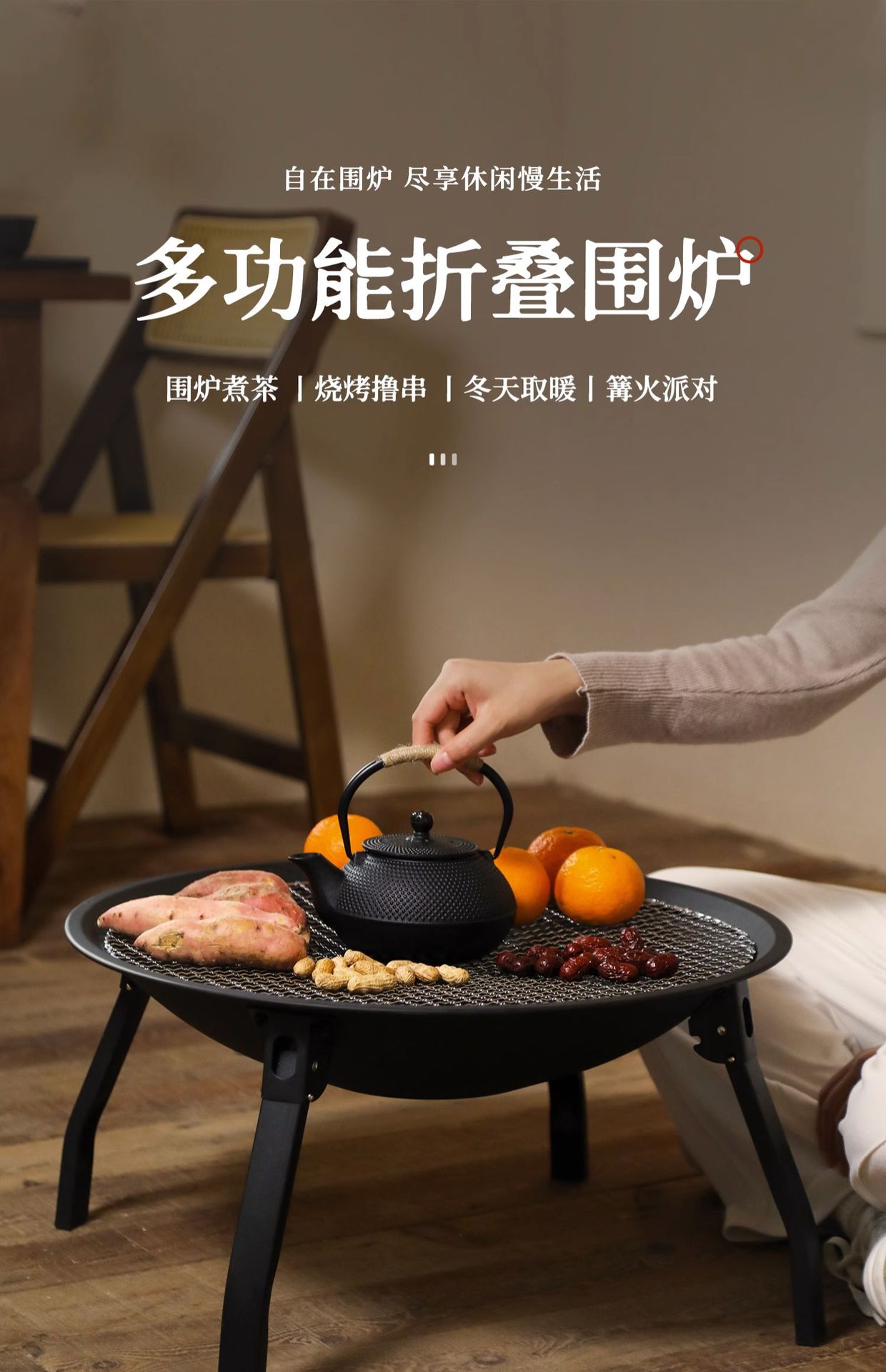 휴대용 포위 난로 차 가정용 실내 바베큐 야외 탄소 바베큐 그릴 테이블 숯 화재 난방 및 베이킹 화재 냄비 전체 세트스토어 가기