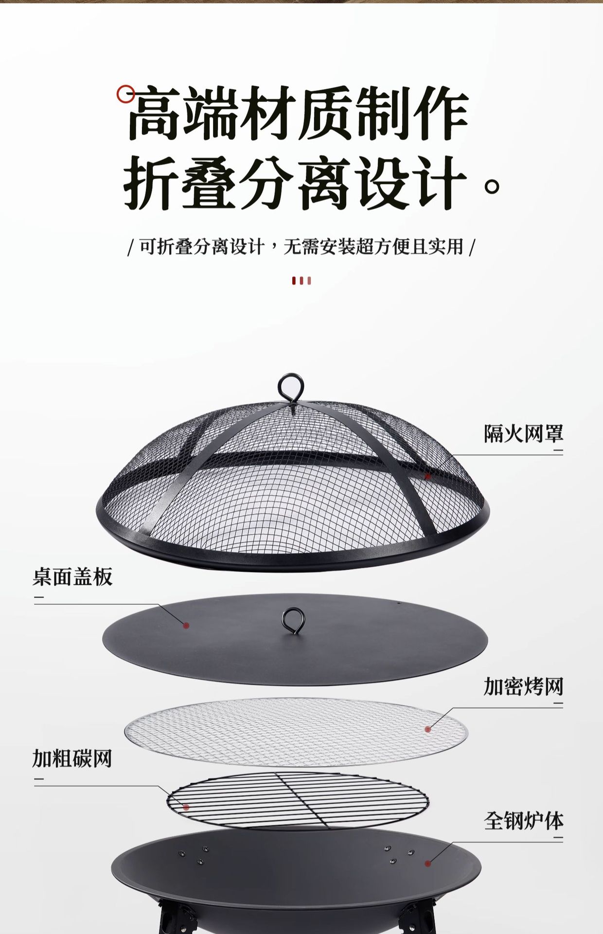 • 접이식 인클로저 노 + 카본 넷 + 파이어 훅 + 베이킹 넷 + 그물 리프팅 장치 + 화성 방지 넷 커버 + 테이블 보드