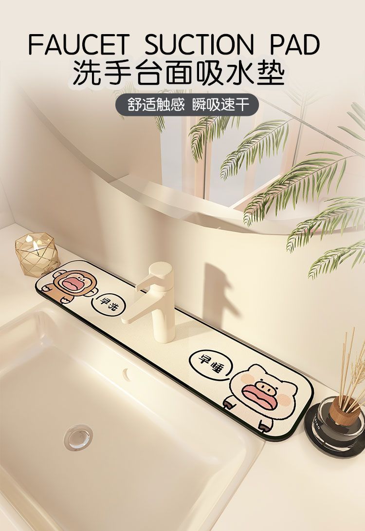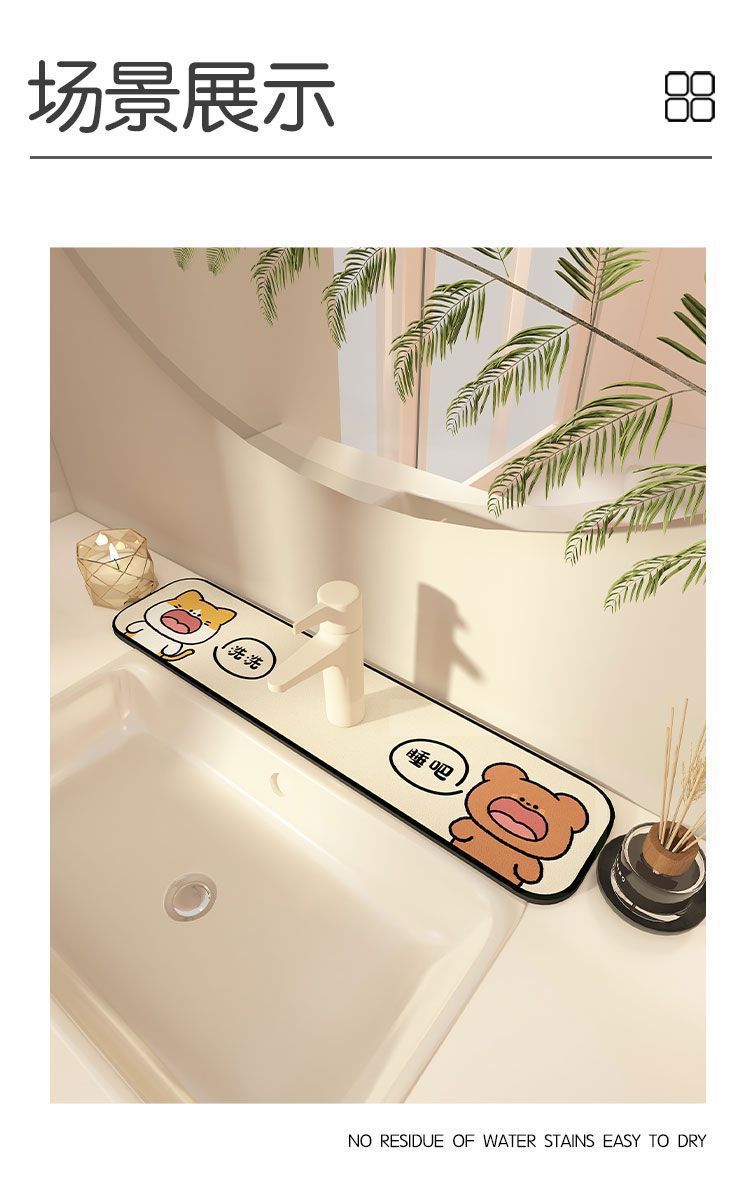 귀여운 만화 주방 욕실 수도꼭지 매트 세면대 배수 매트 긴 스트립 흡수성 튀김 방지 가정용 매트스토어 가기