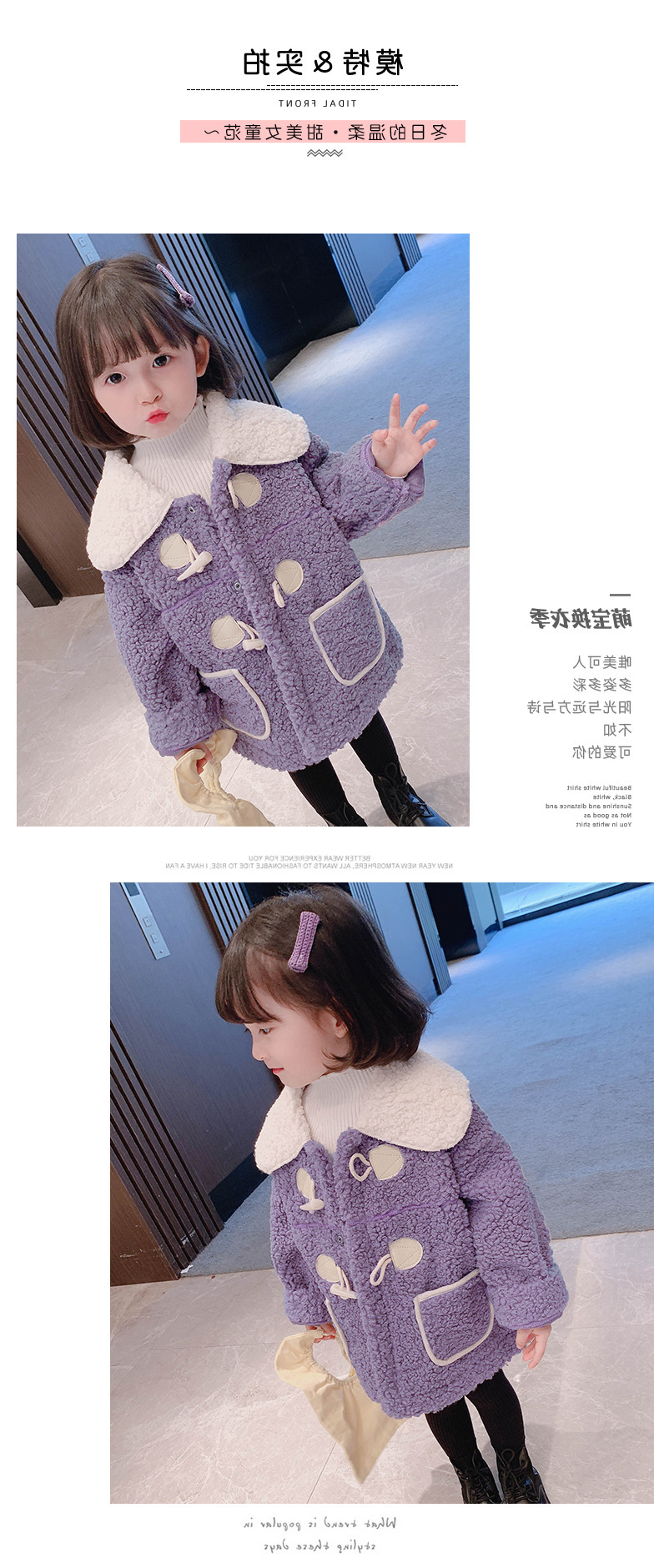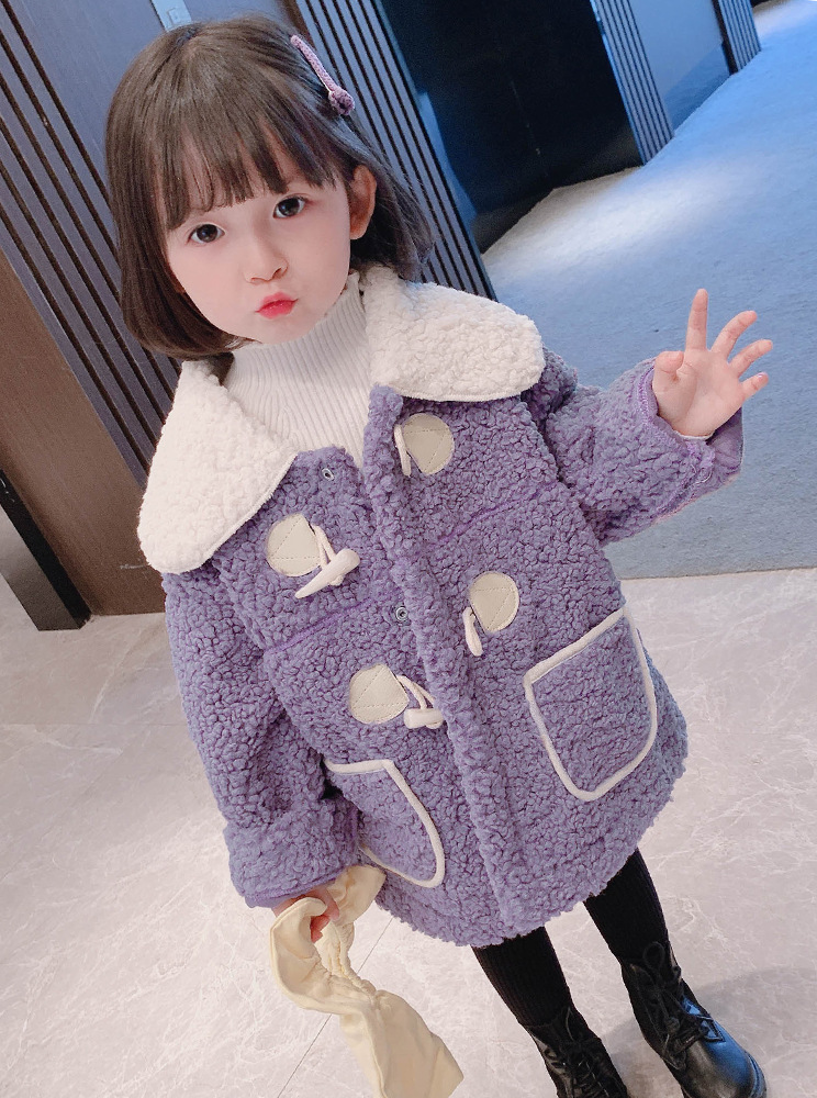 6020 여아 코트 양고기 양털 옥수수 버클 복합 양털 두꺼운 탑 23 겨울 새로운 대외 무역 아동복스토어 가기