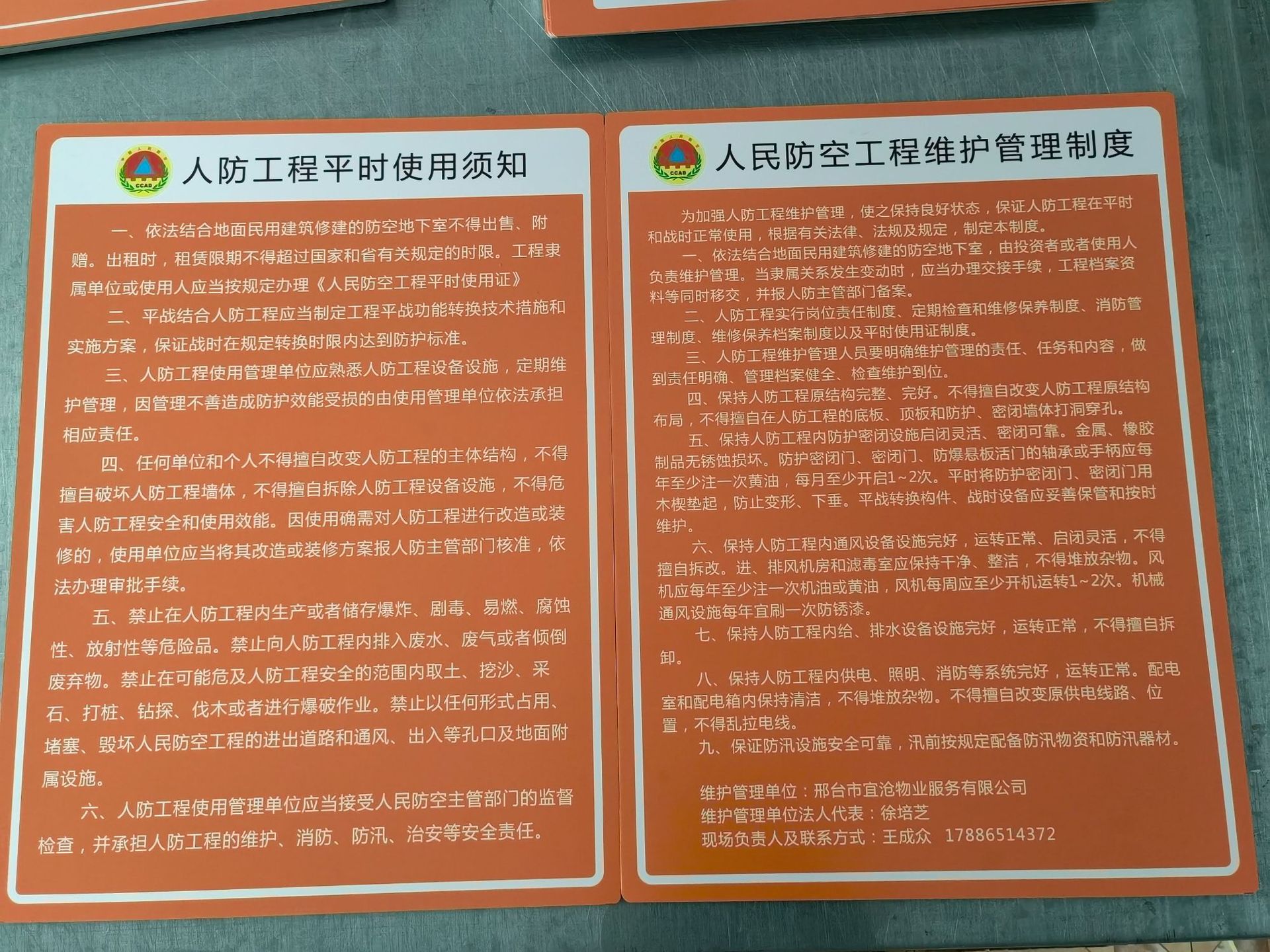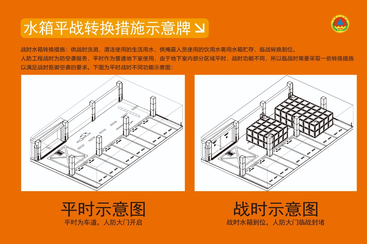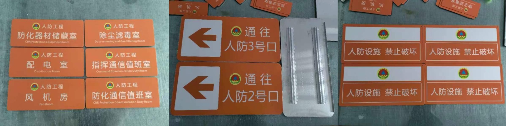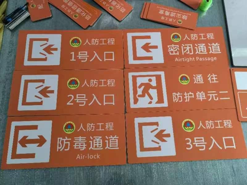 민방위공학 표지판, 화재 출입구 반사 경고판, 지하 대피소 및 방공 표지판