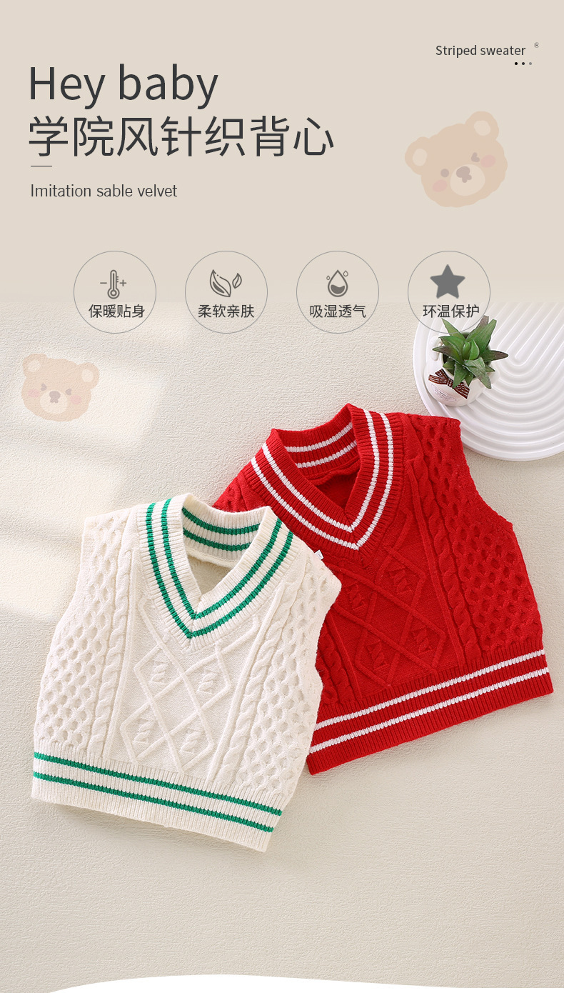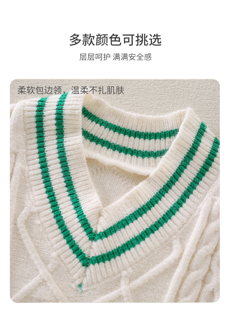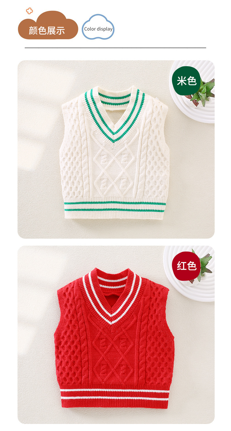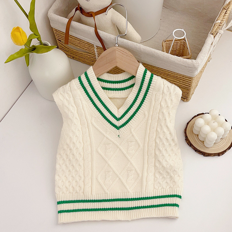 [특가] 봄 신상 아동용 컬리지 스타일 조끼형 스웨터 유아용 브이넥 스웨터 남녀 아기용스토어 가기