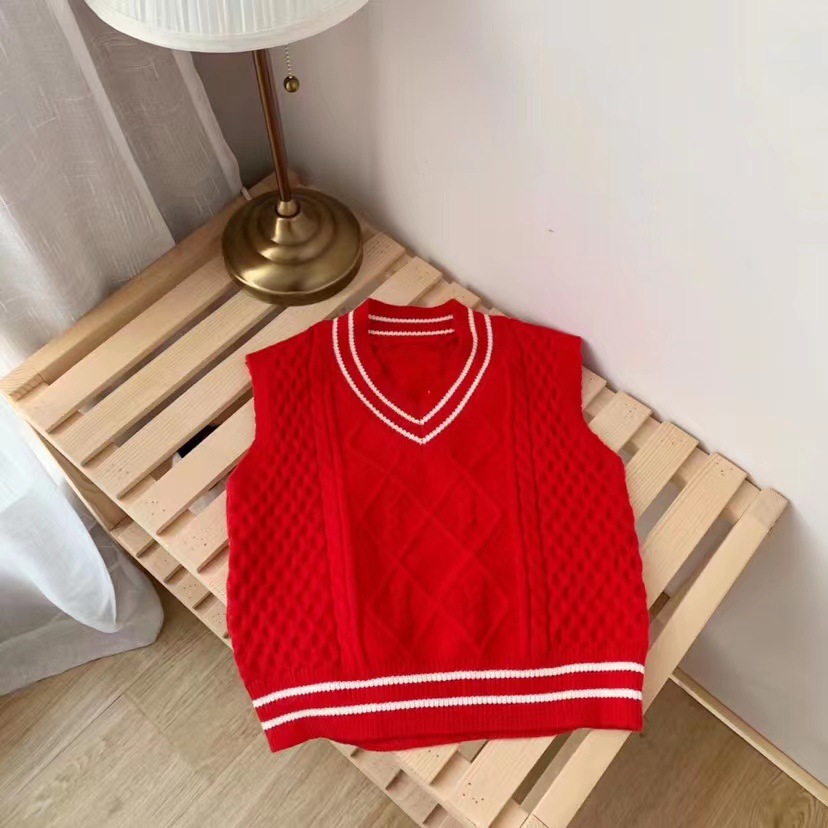 [특가] 봄 신상 아동용 컬리지 스타일 조끼형 스웨터 유아용 브이넥 스웨터 남녀 아기용