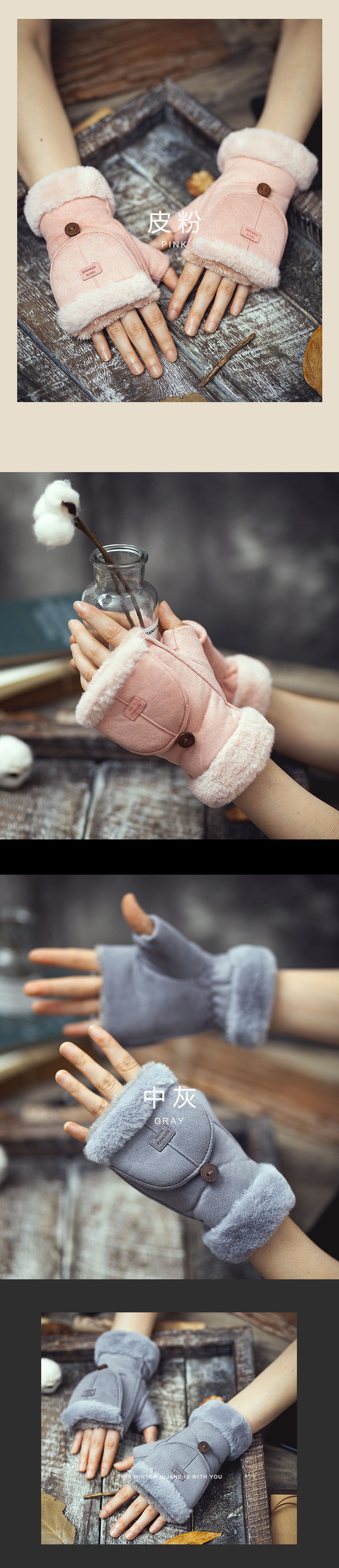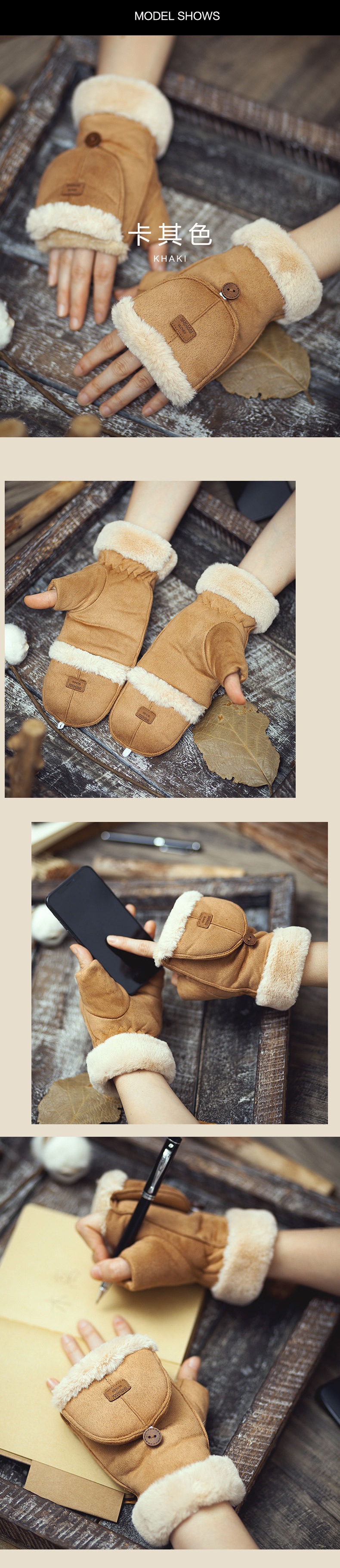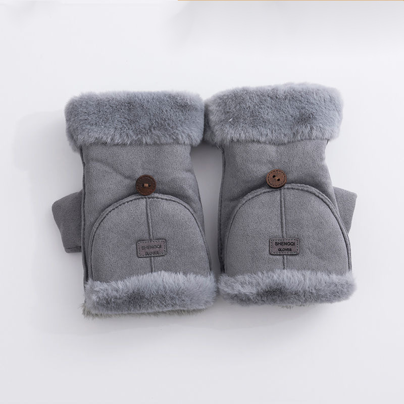 사이클링 장갑, 스웨이드 여성용 학생용 성인용 가을 겨울 따뜻하고 귀여운 플러스 벨벳 두꺼운 플립 커버 터치 스크린 사무용스토어 가기