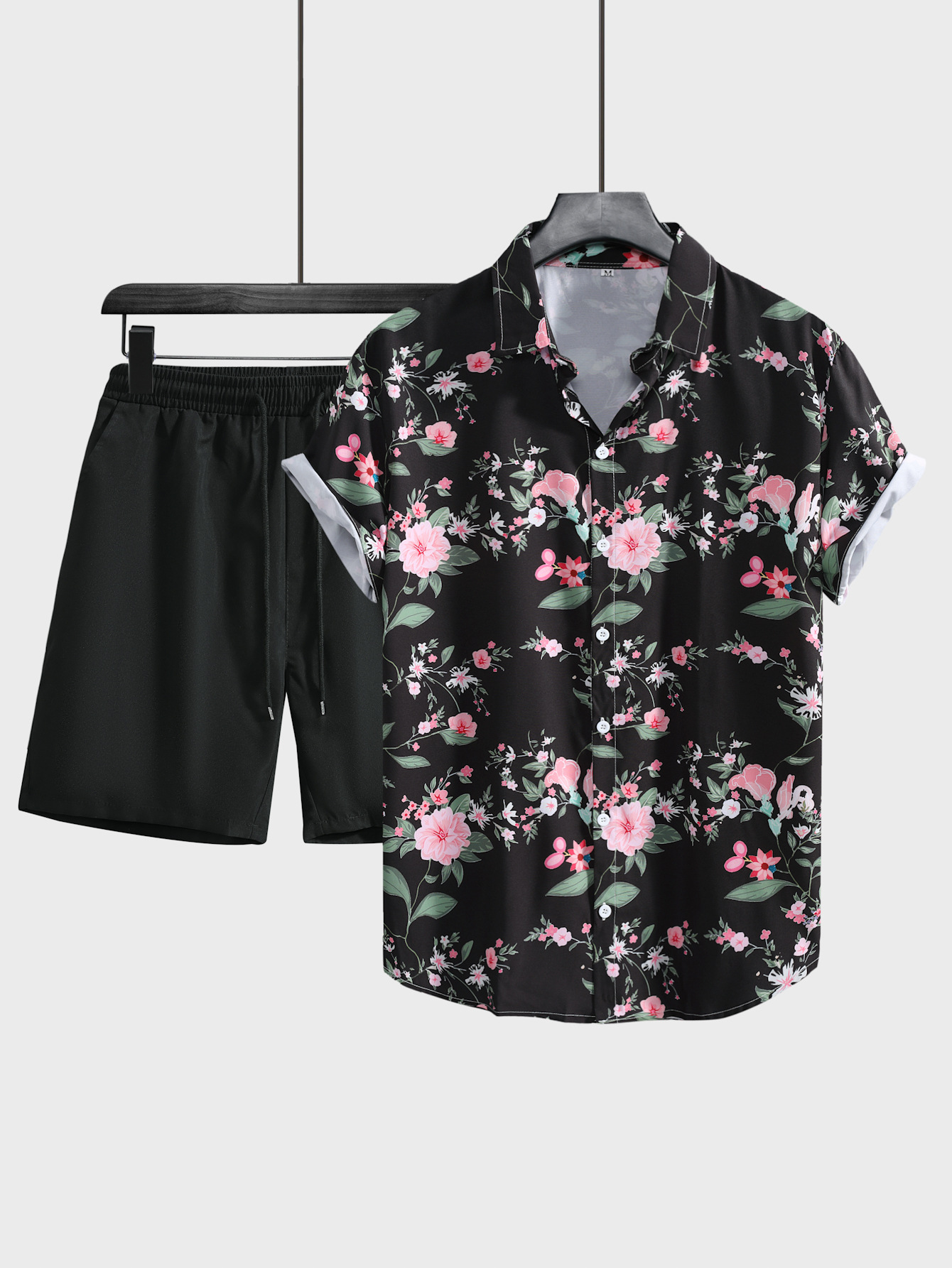 남성 캐주얼 프린트 반팔 셔츠 세트