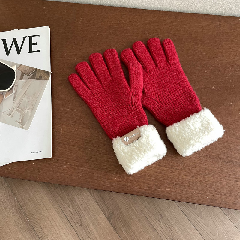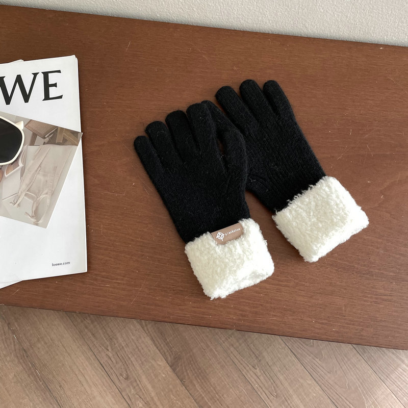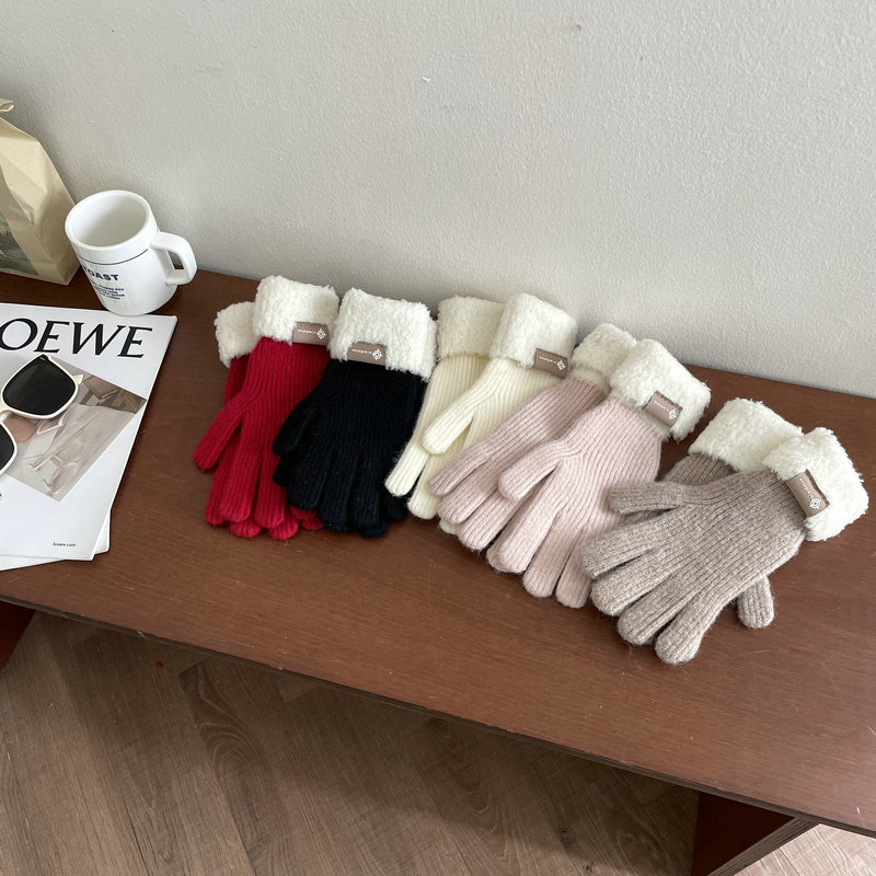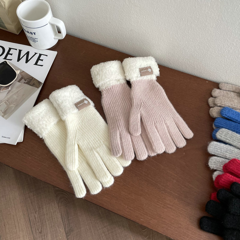 새로운 2023 두꺼운 방한 니트 장갑 부드러운 왁스 따뜻한 양고기 양모 스티칭 장갑 라이딩 터치 스크린