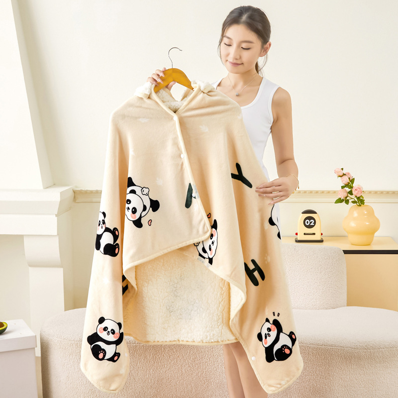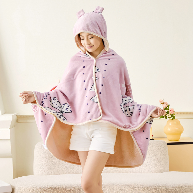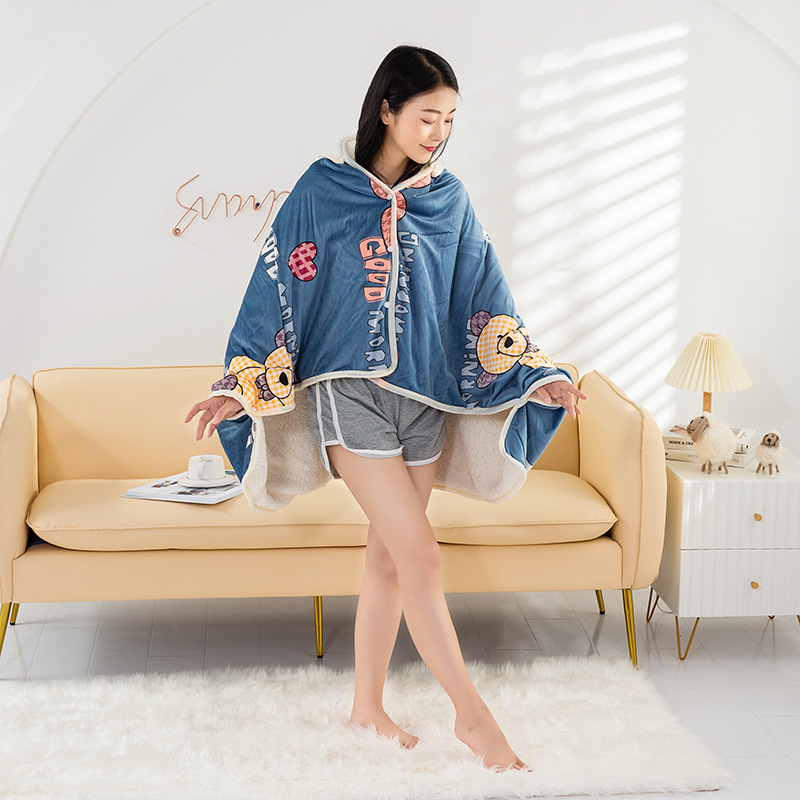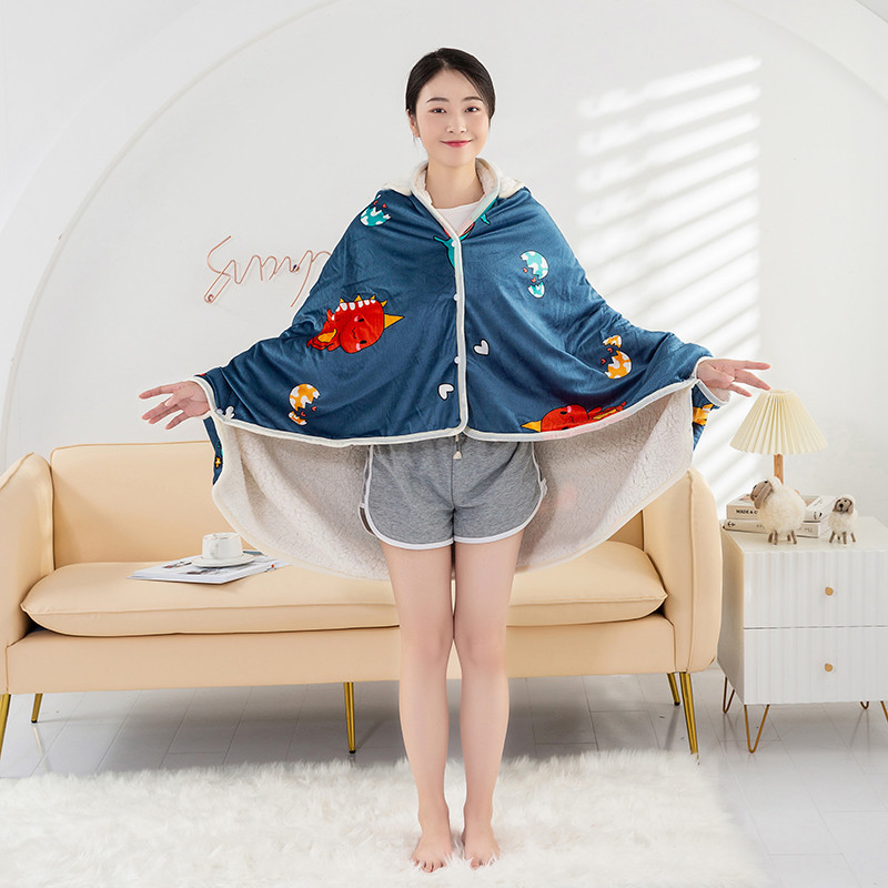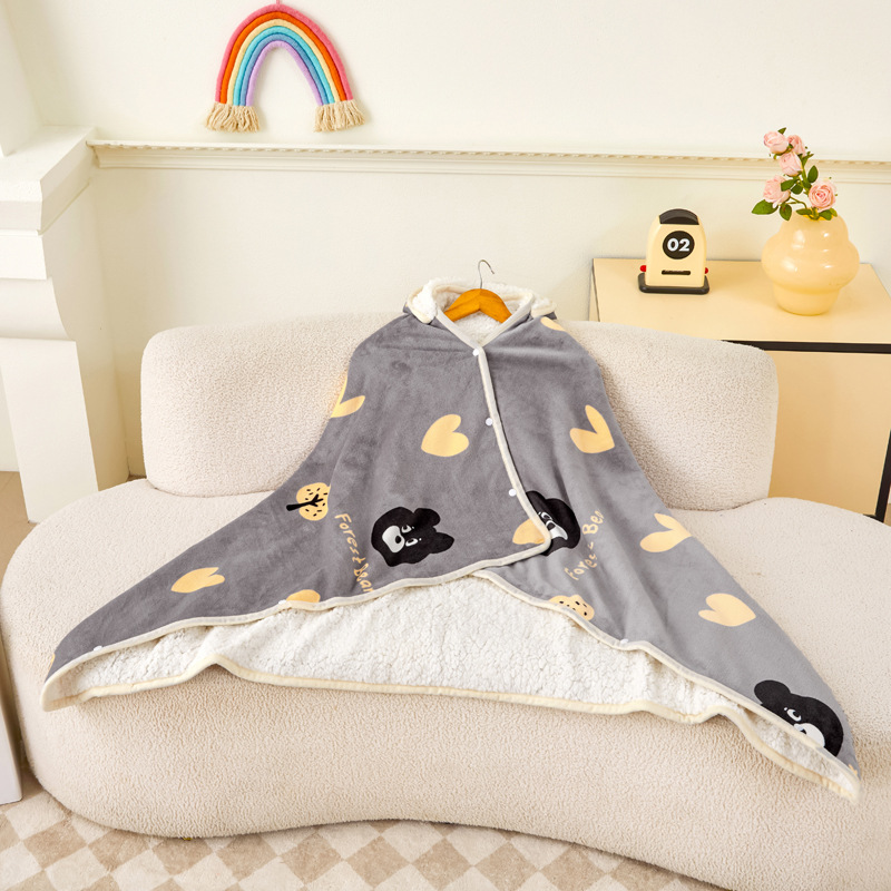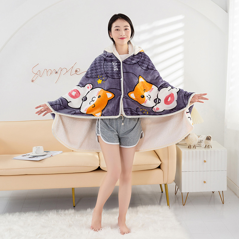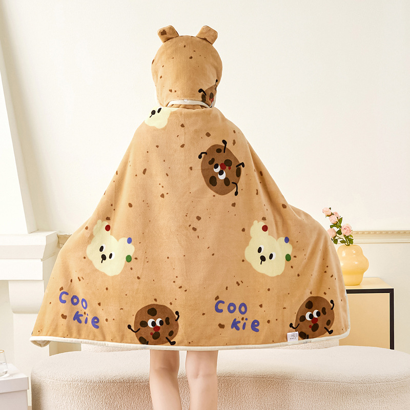 밀크 벨벳 숄 담요 사무실 어린이 점심 시간 담요 겨울 두꺼운 단일 학생 모자 숄 케이프 담요