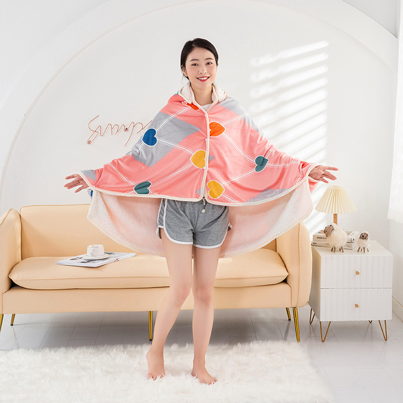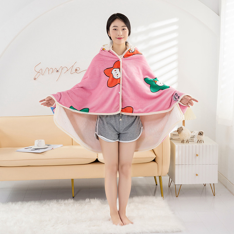 밀크 벨벳 숄 담요 사무실 어린이 점심 시간 담요 겨울 두꺼운 단일 학생 모자 숄 케이프 담요스토어 가기