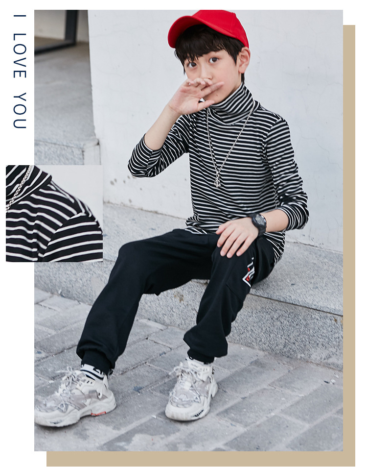 가을과 겨울 소년 긴팔 티셔츠 면 하이 칼라 보텀 셔츠 110-160cm 패션 스트라이프 하이 칼라 자켓 도매스토어 가기