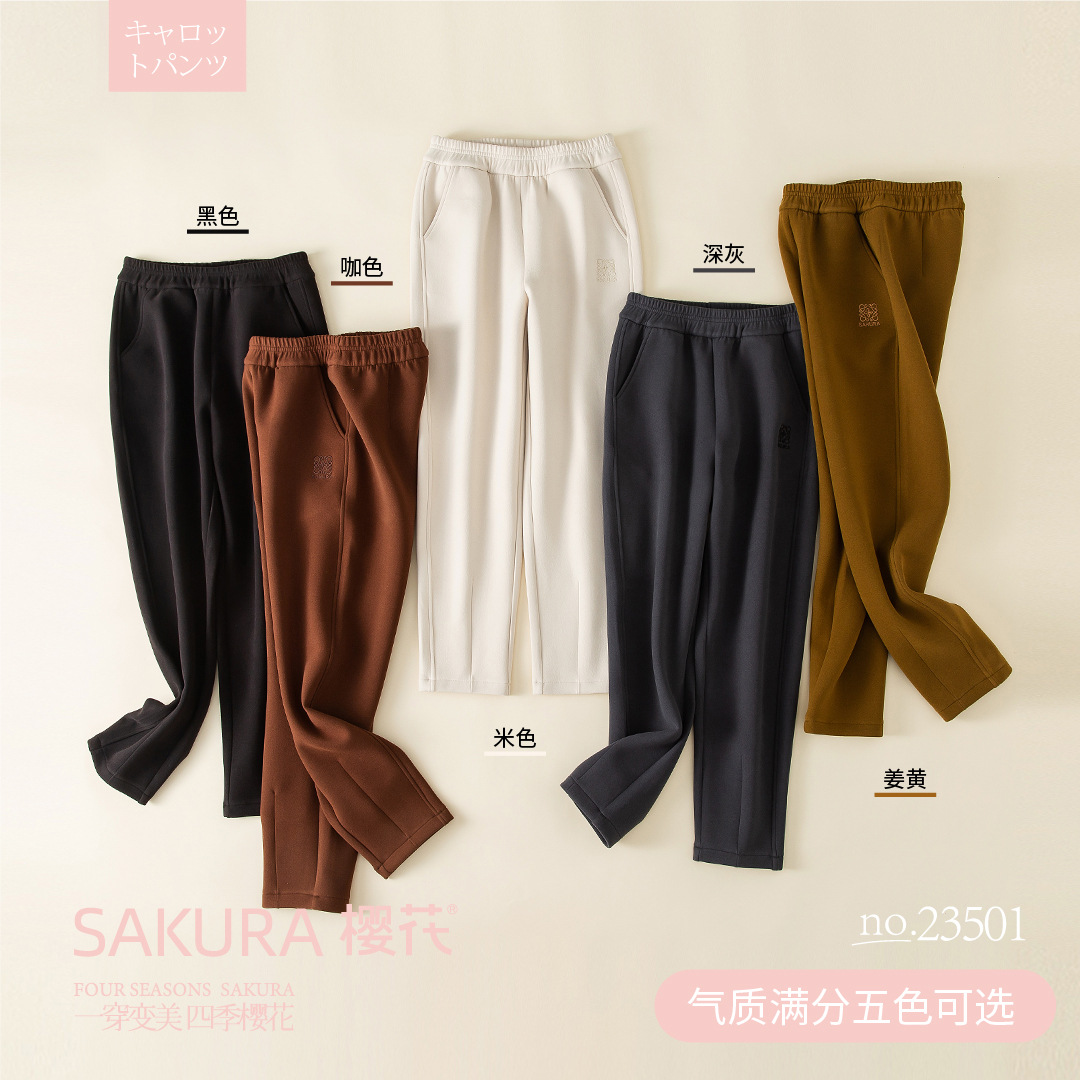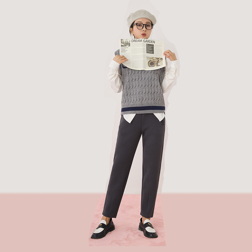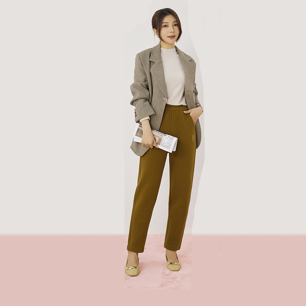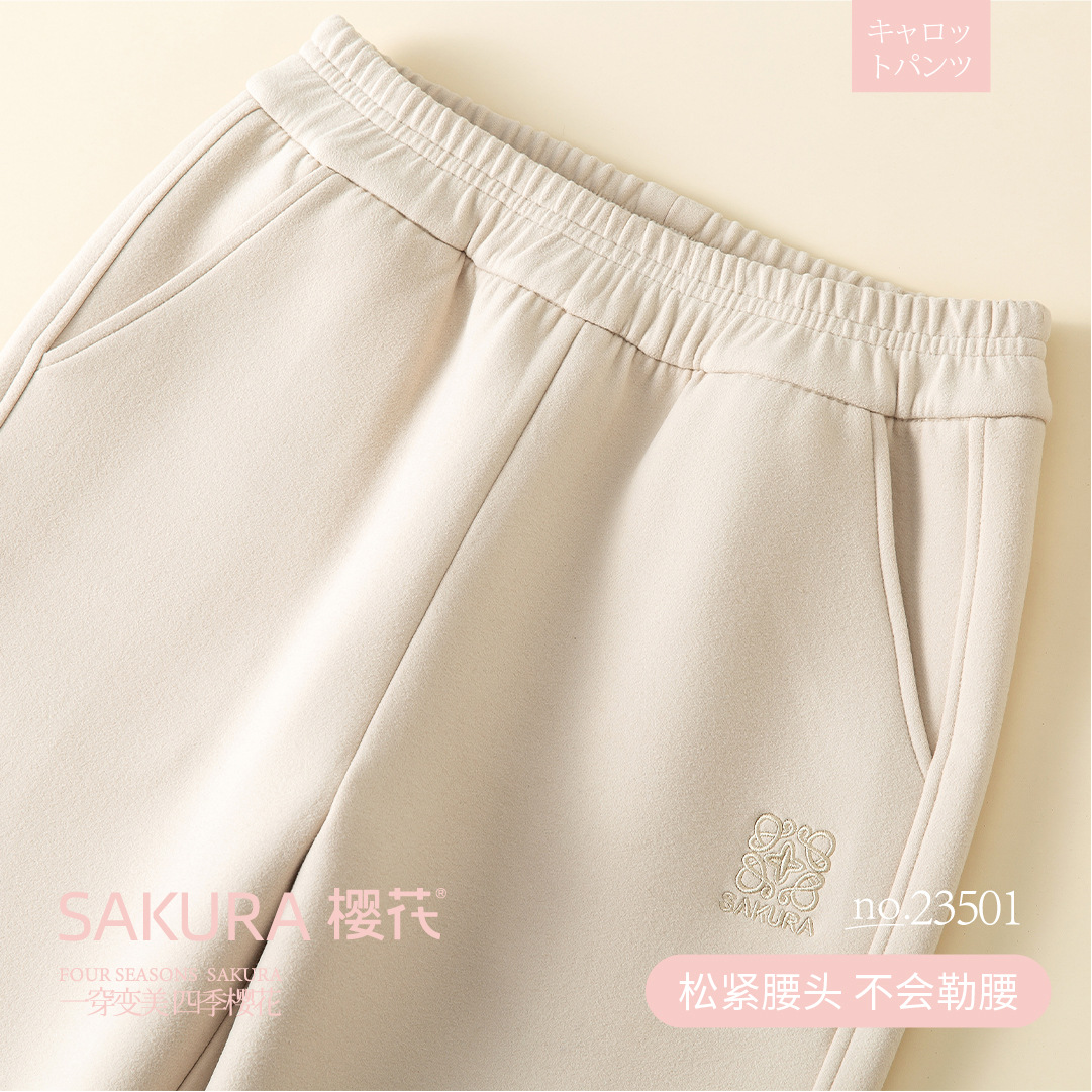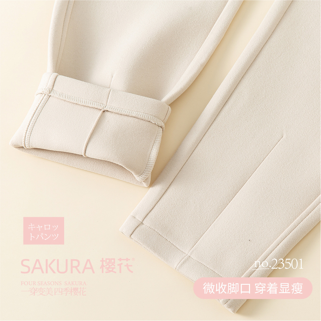기모 두꺼운 방풍 바지 여자의 가을과 겨울 따뜻한 울 탄성 하이 웨이스트 당근 바지 캐주얼 바지 유행 모든 일치스토어 가기