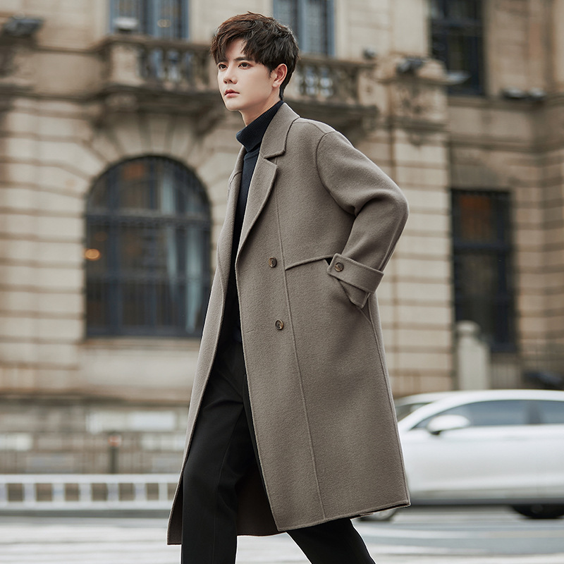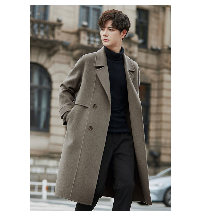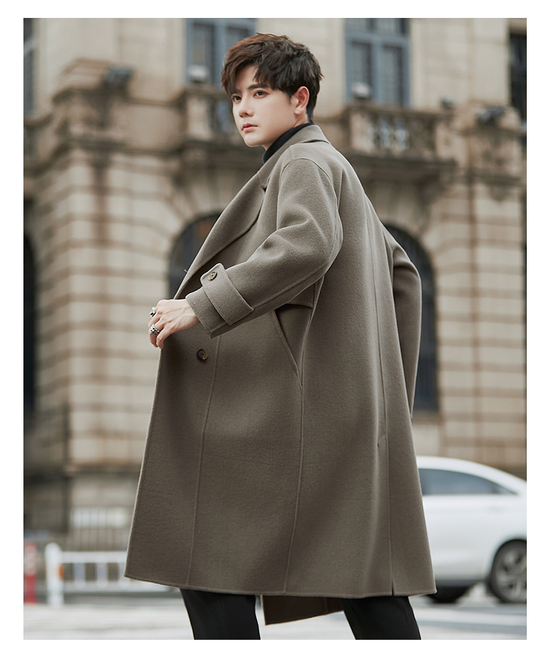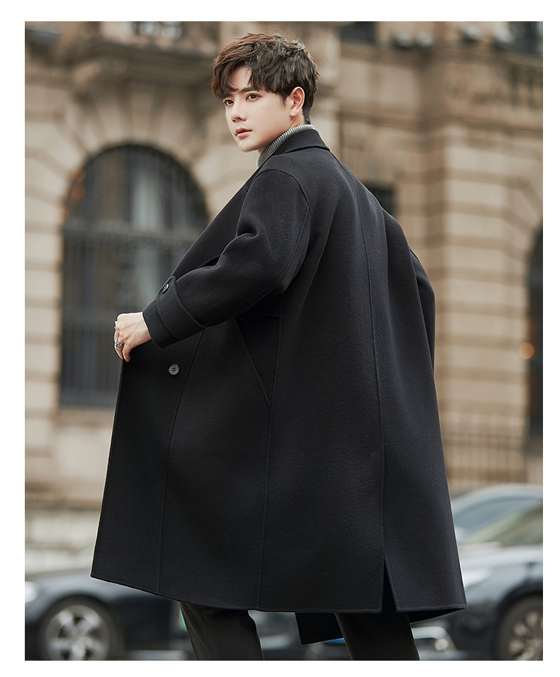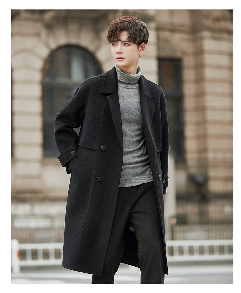 58165 더블 브레스트 모직 코트 남자 중간 길이의 무릎 길이 두꺼운 티트 코트 양면 비 캐시미어 코트 트렌디스토어 가기