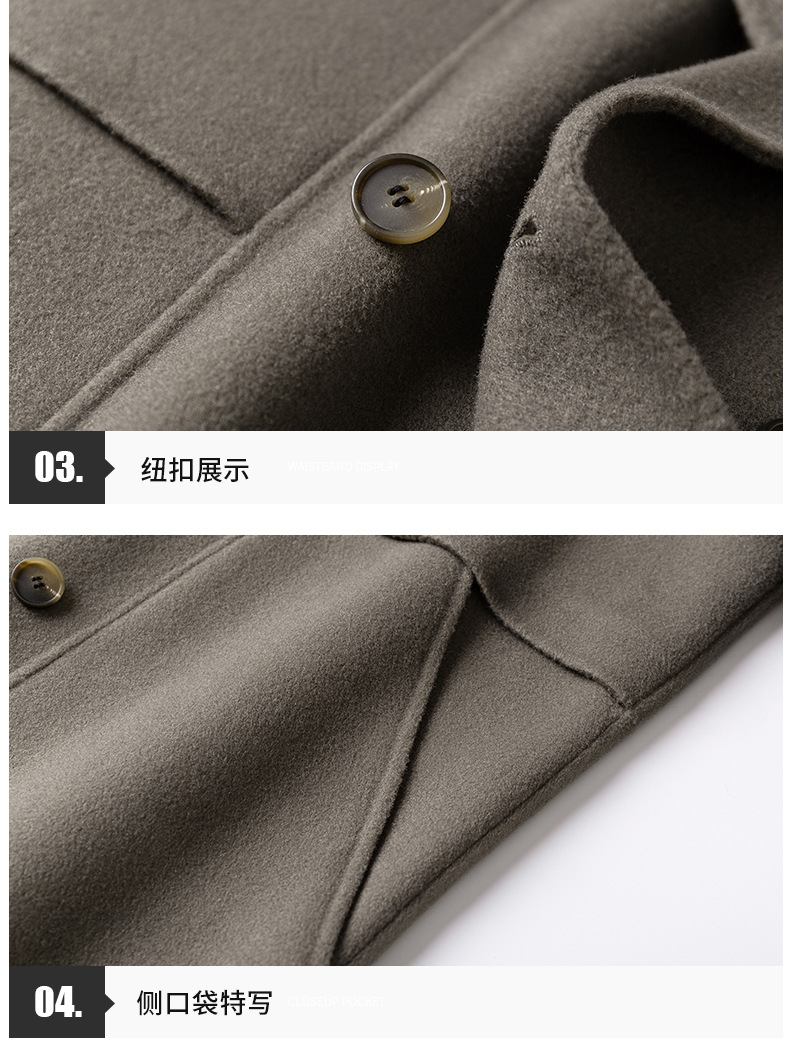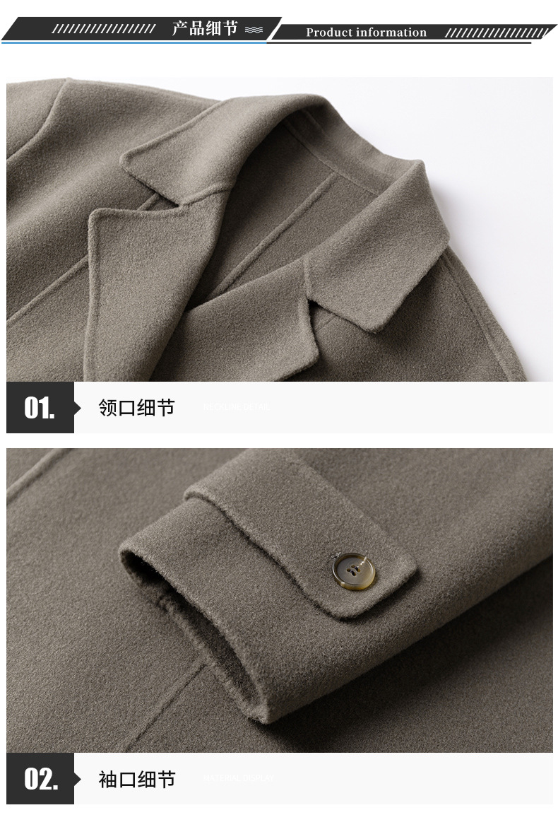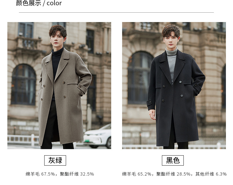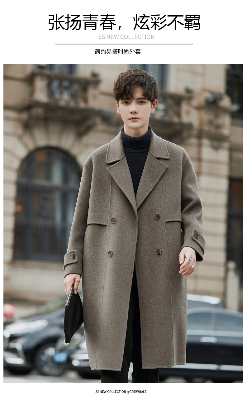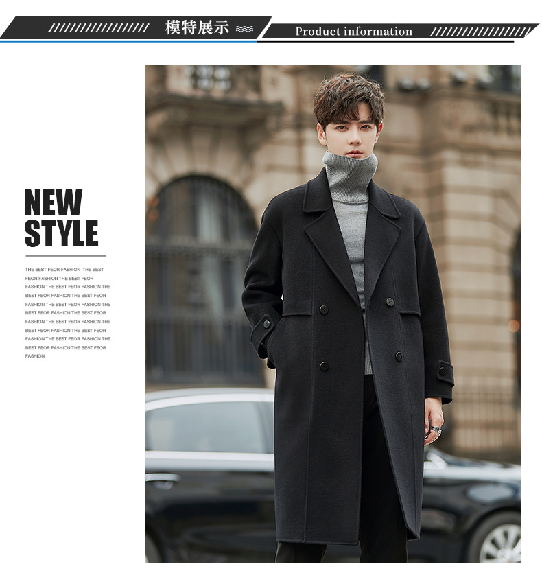58165 더블 브레스트 모직 코트 남자 중간 길이의 무릎 길이 두꺼운 티트 코트 양면 비 캐시미어 코트 트렌디스토어 가기