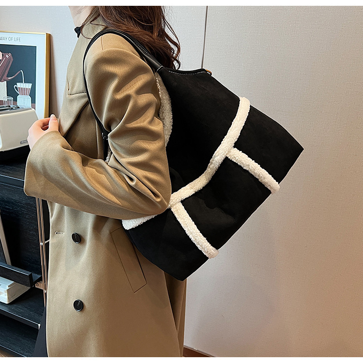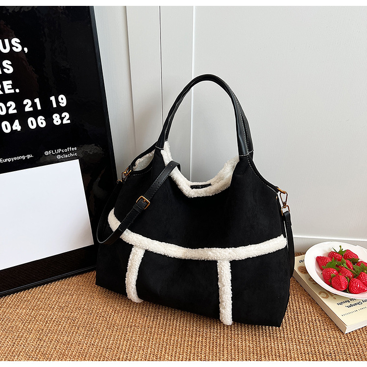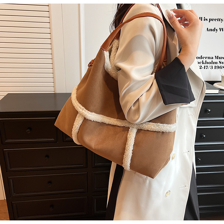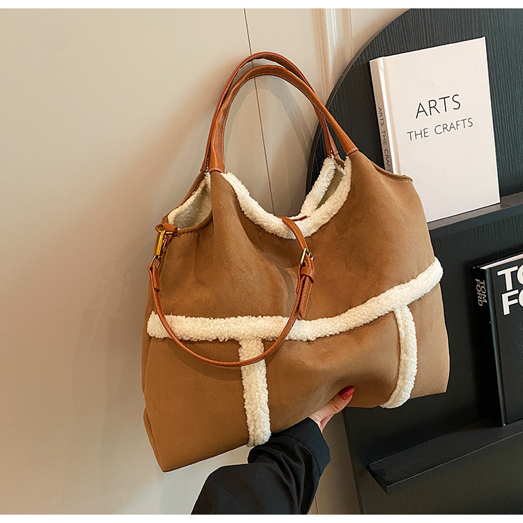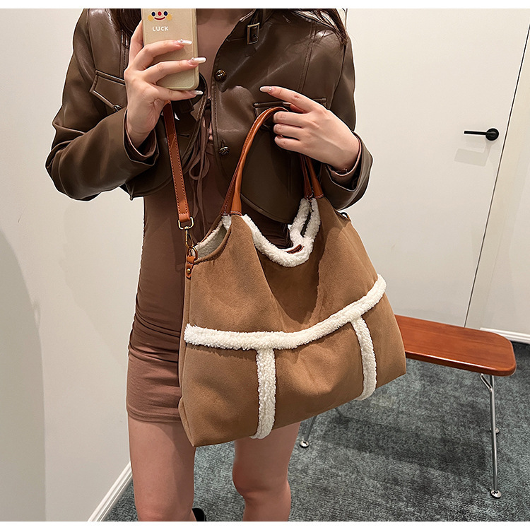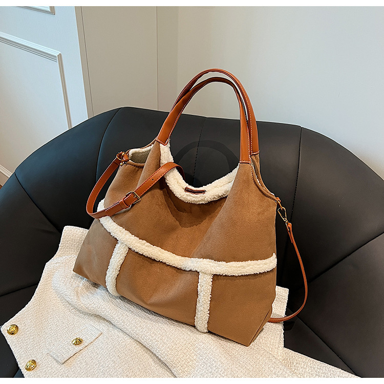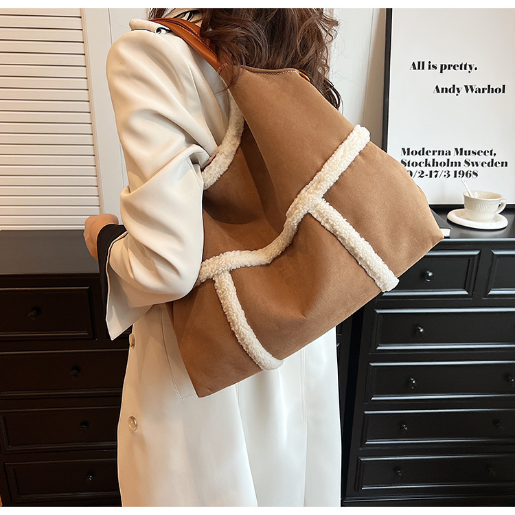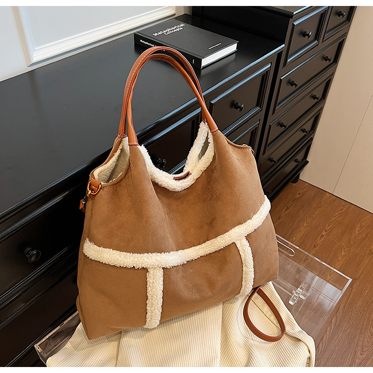 2023 새로운 캐주얼 대용량 스웨이드 핸드 토트백 여성용 가을과 겨울 고급 토트백스토어 가기