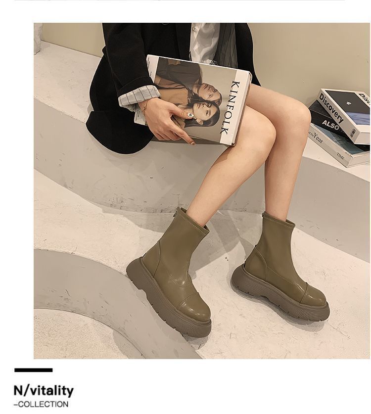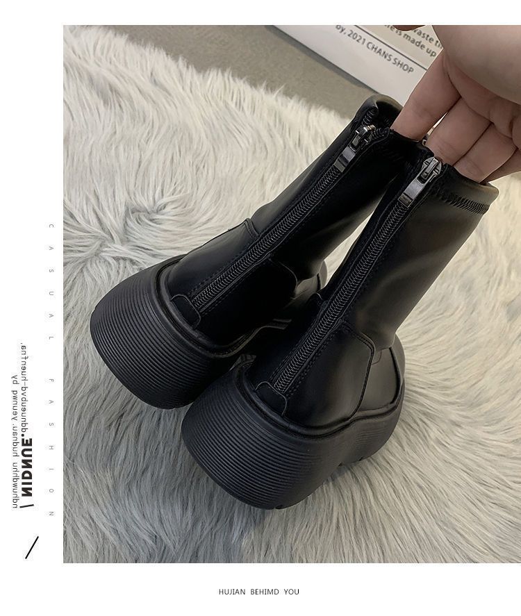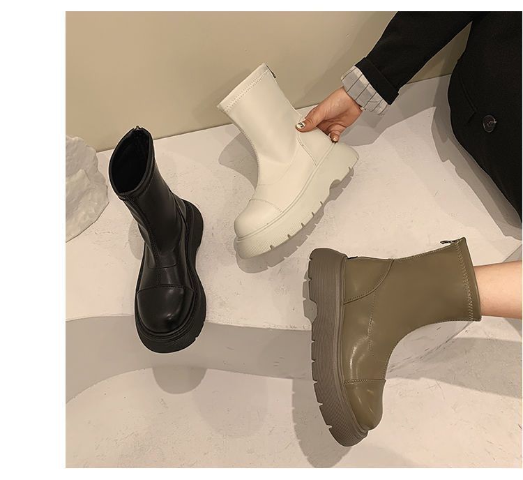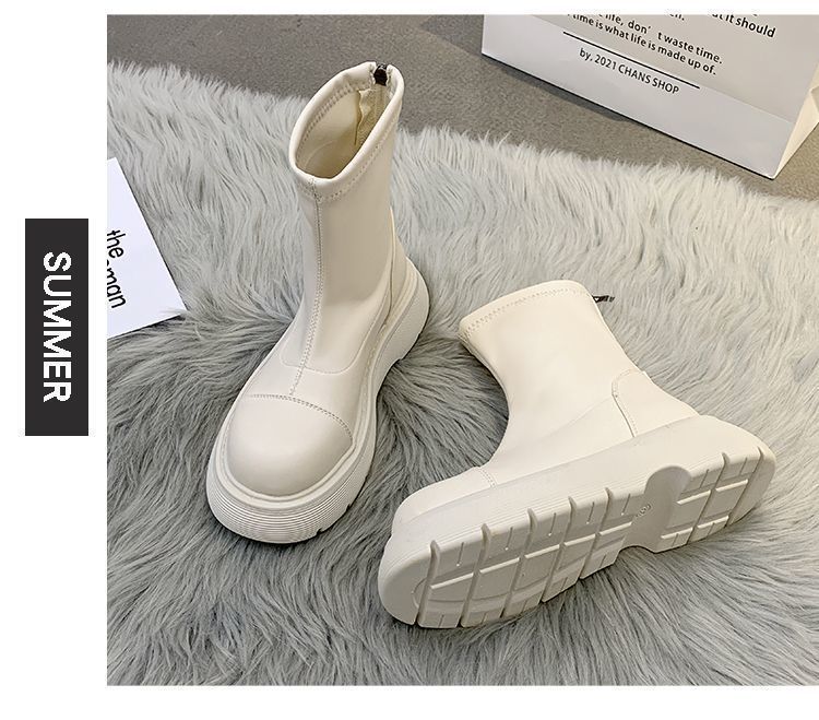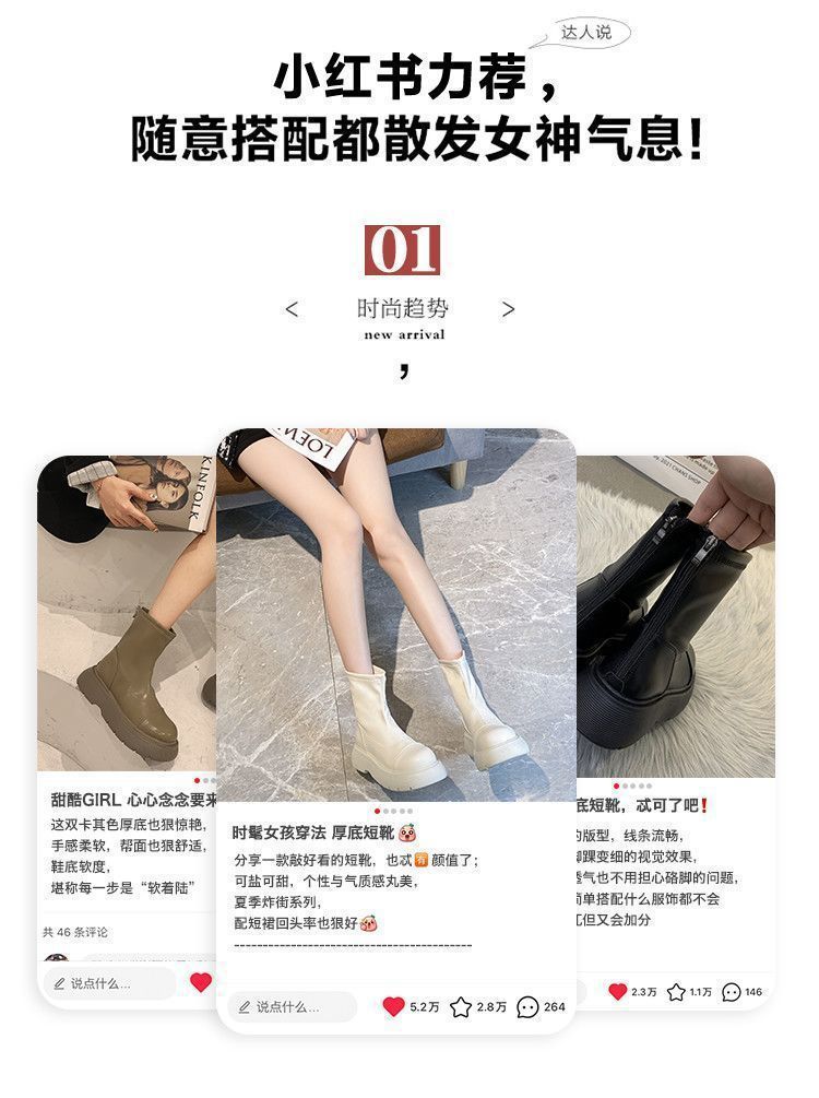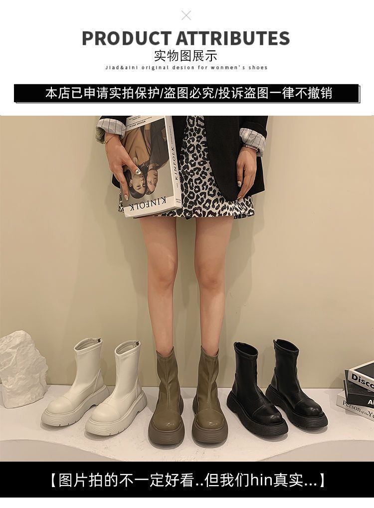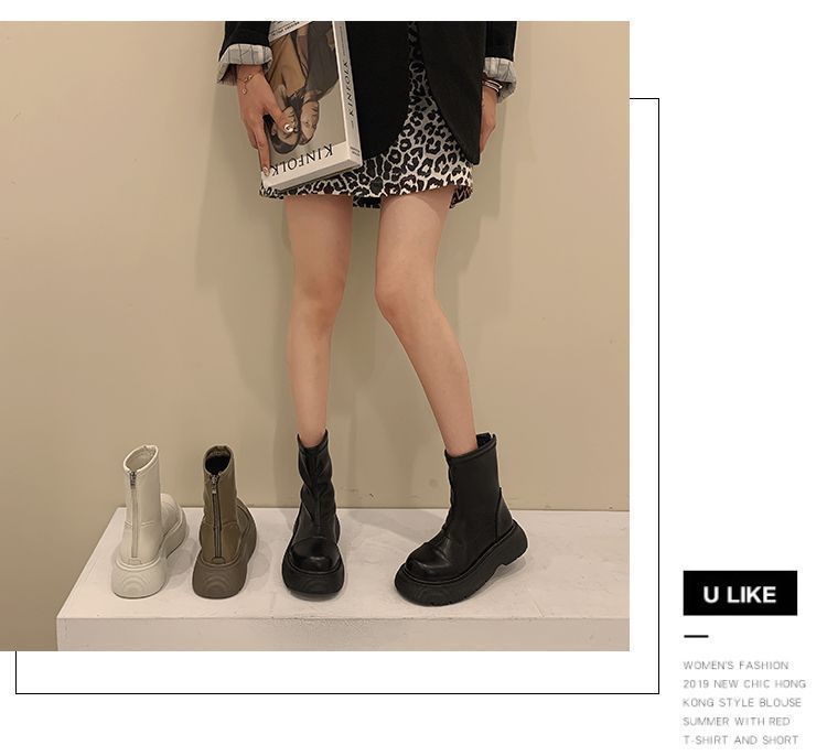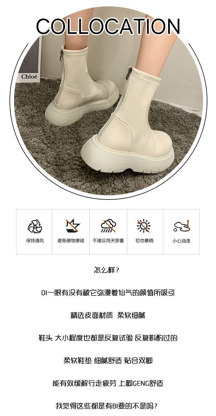 짧은 부츠 여성용 봄/가을 2023 새로운 온라인 인기 유행 모든 경기 후면 지퍼 월병 두꺼운 바닥 미끄럼 방지 얇은 부츠 트렌디스토어 가기
