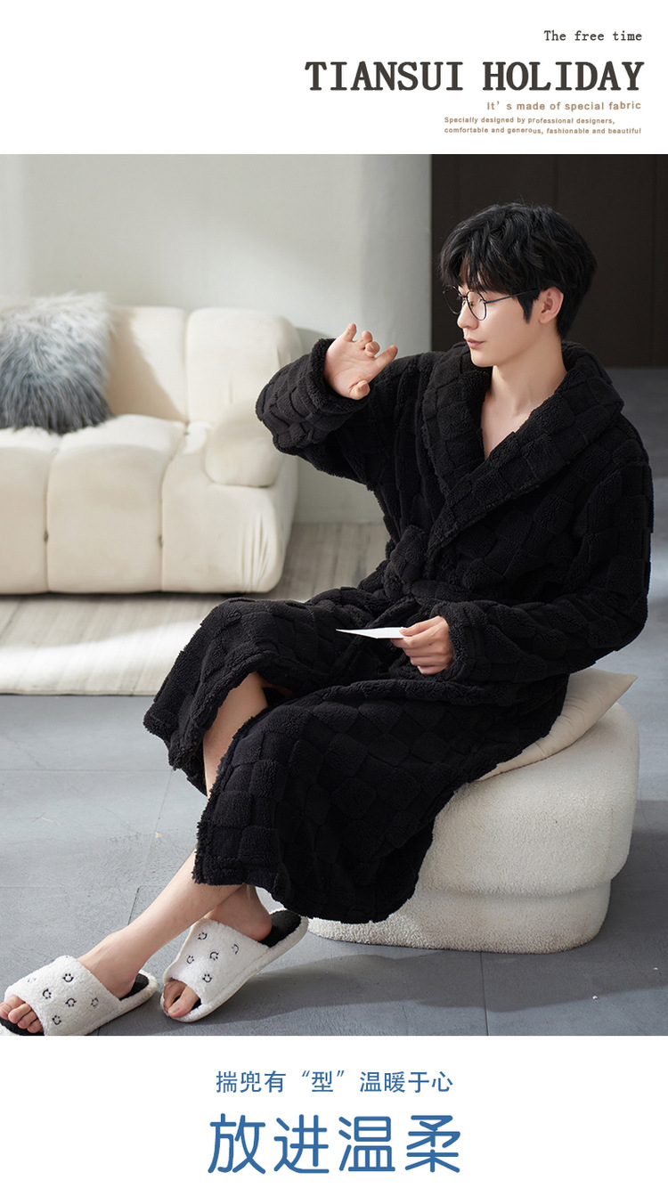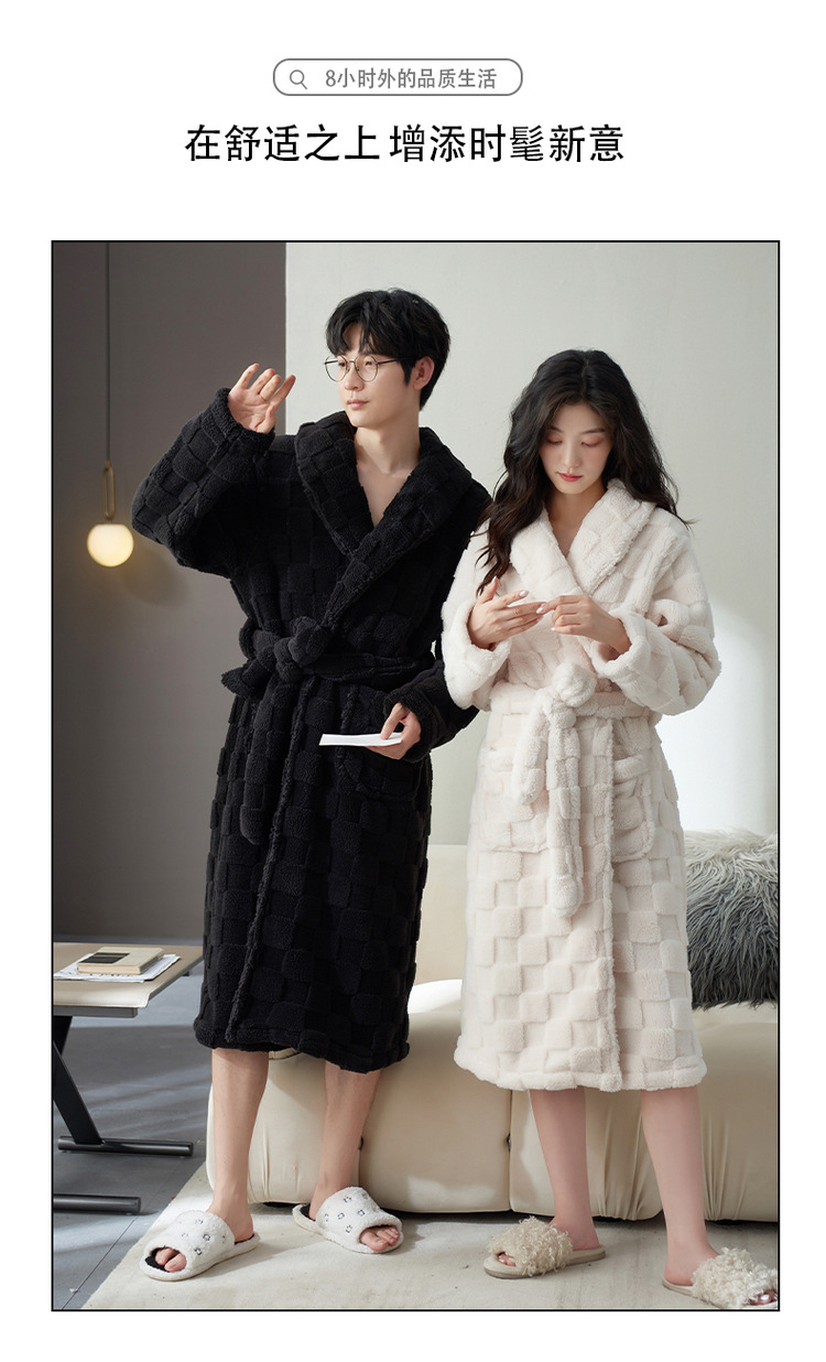 긴 두꺼운 커플의 잠옷 여자의 플란넬 목욕 가운 남자의 살쪄 플러스 사이즈 가을과 겨울 봉제 Shan 가정 옷