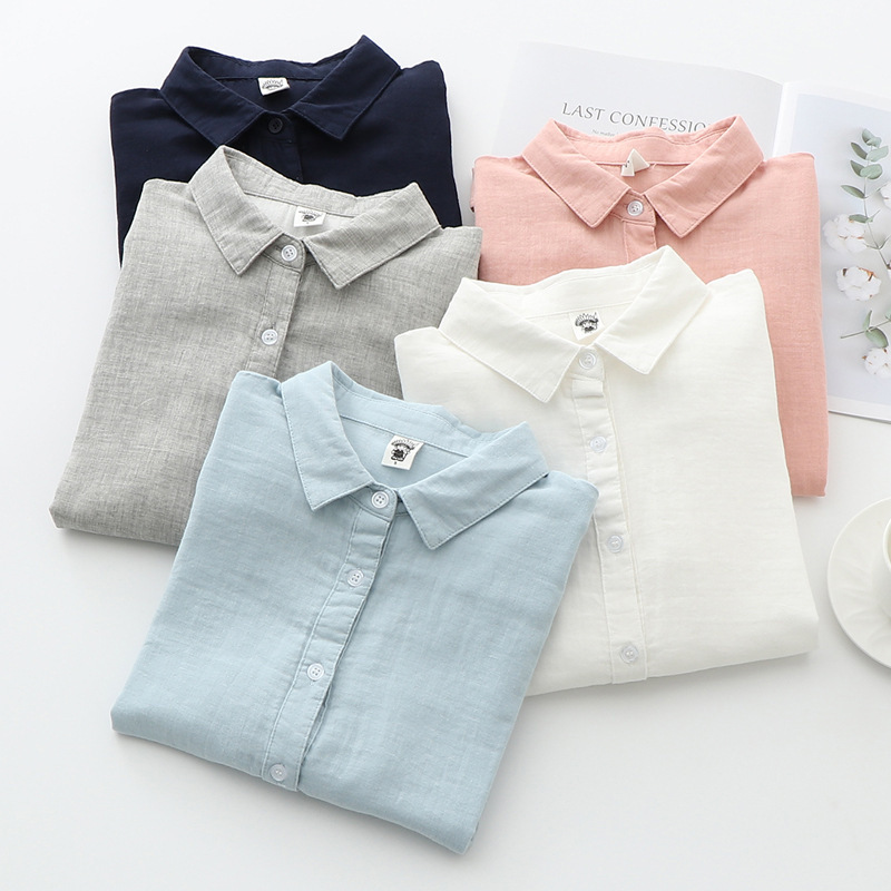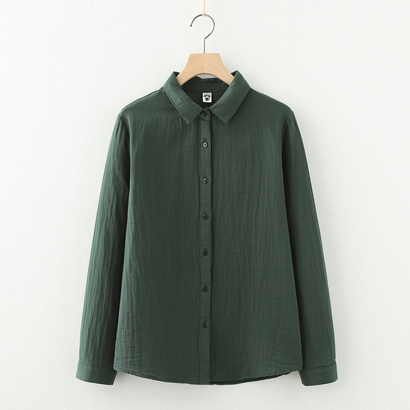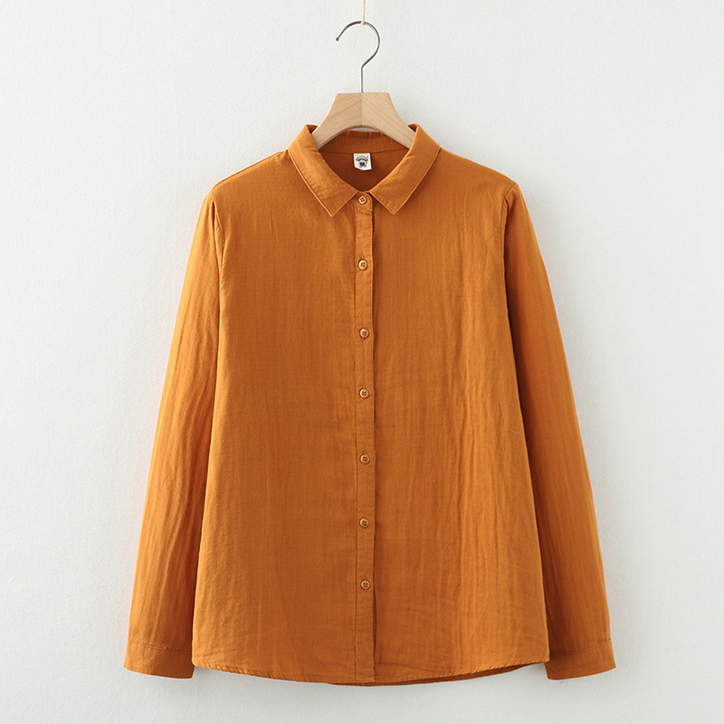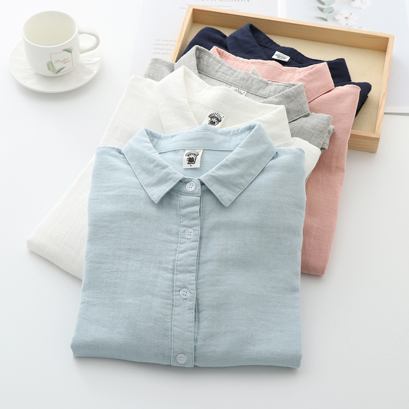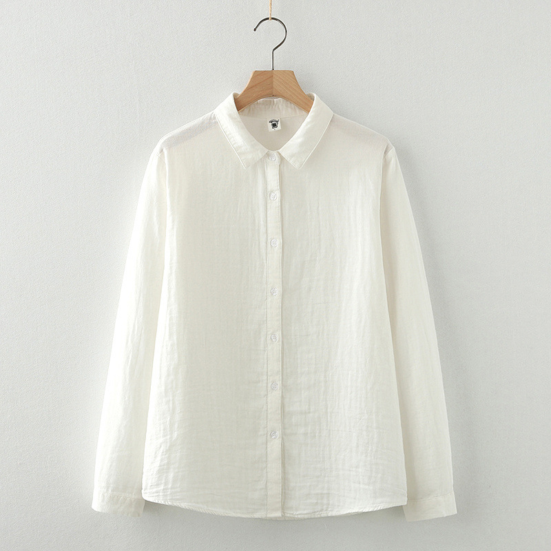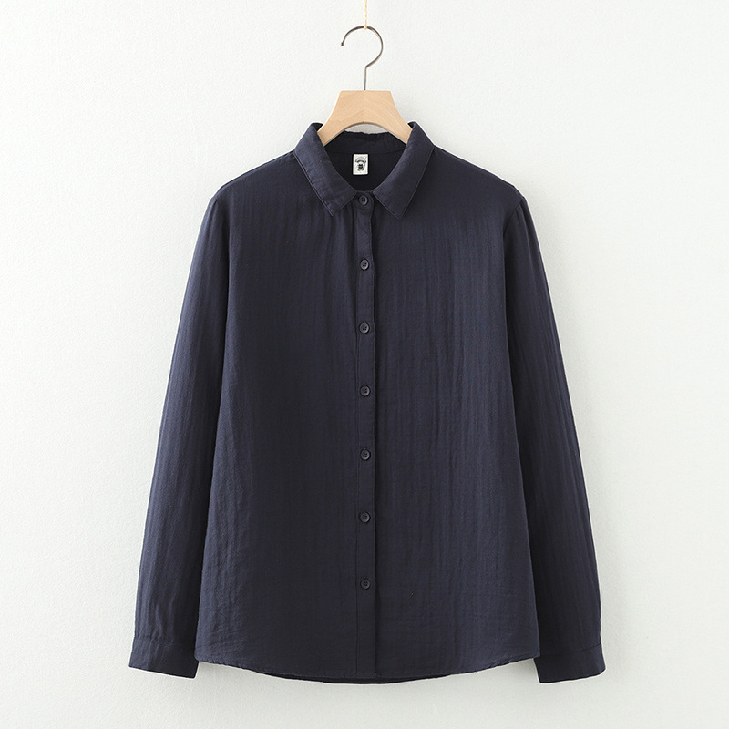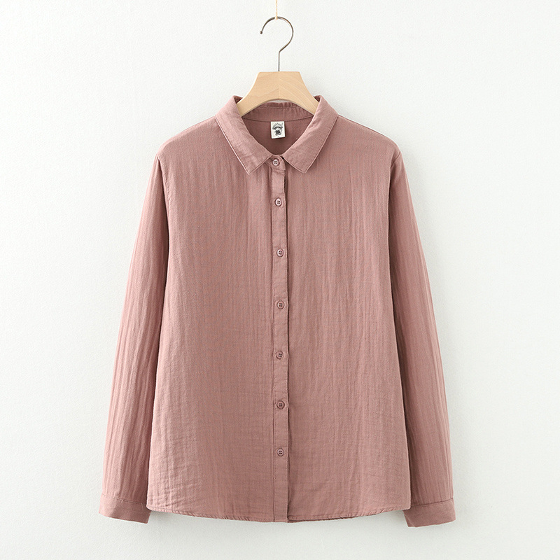 일본 더블 레이어 면사 셔츠 여성용 긴팔 솔리드 컬러 예술적 올 매치 여성용 소프트 셔츠 통근 도매스토어 가기