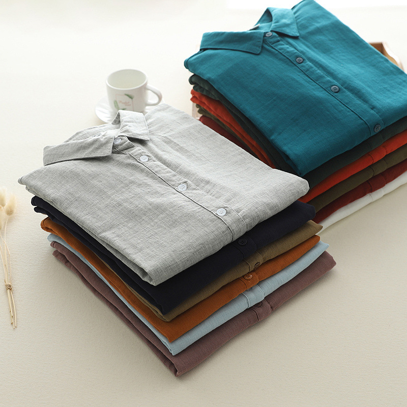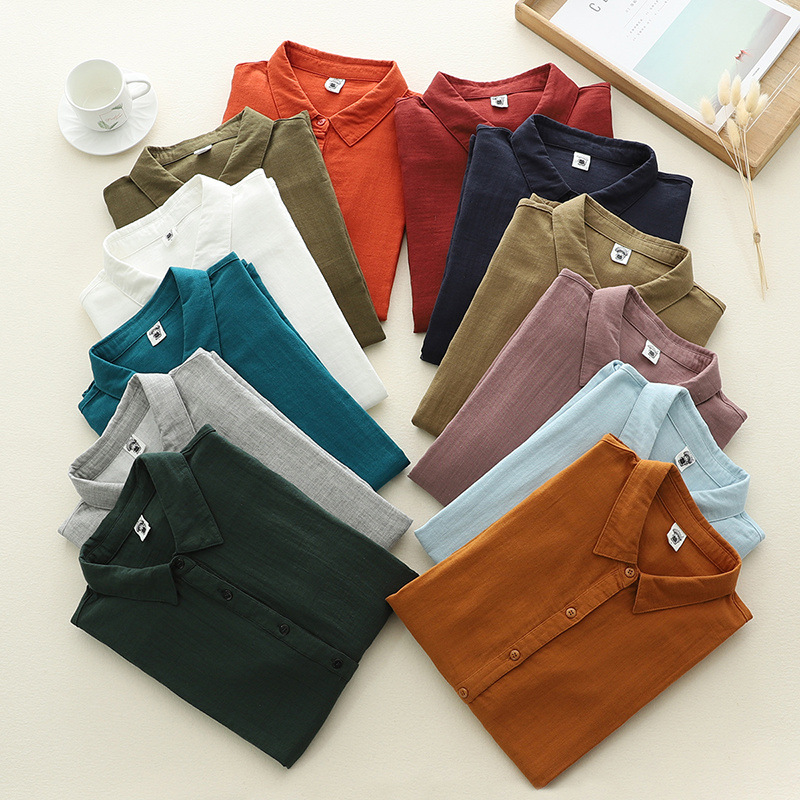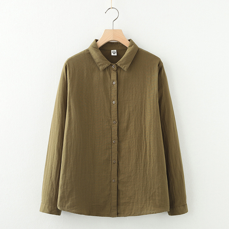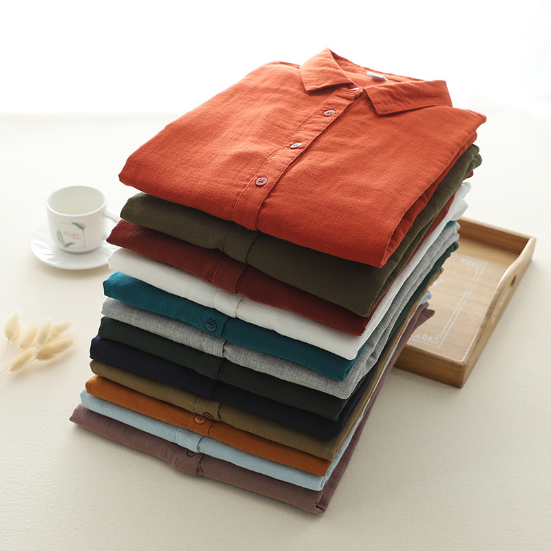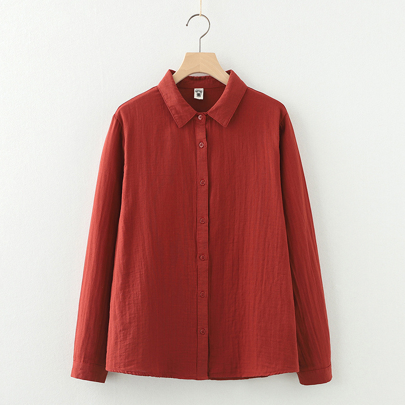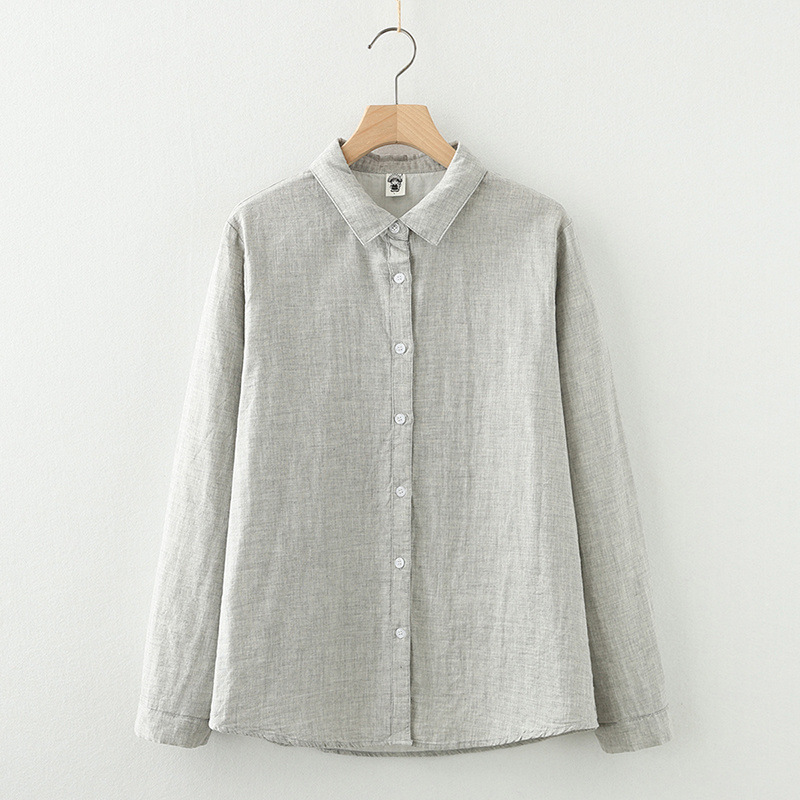 일본 더블 레이어 면사 셔츠 여성용 긴팔 솔리드 컬러 예술적 올 매치 여성용 소프트 셔츠 통근 도매스토어 가기