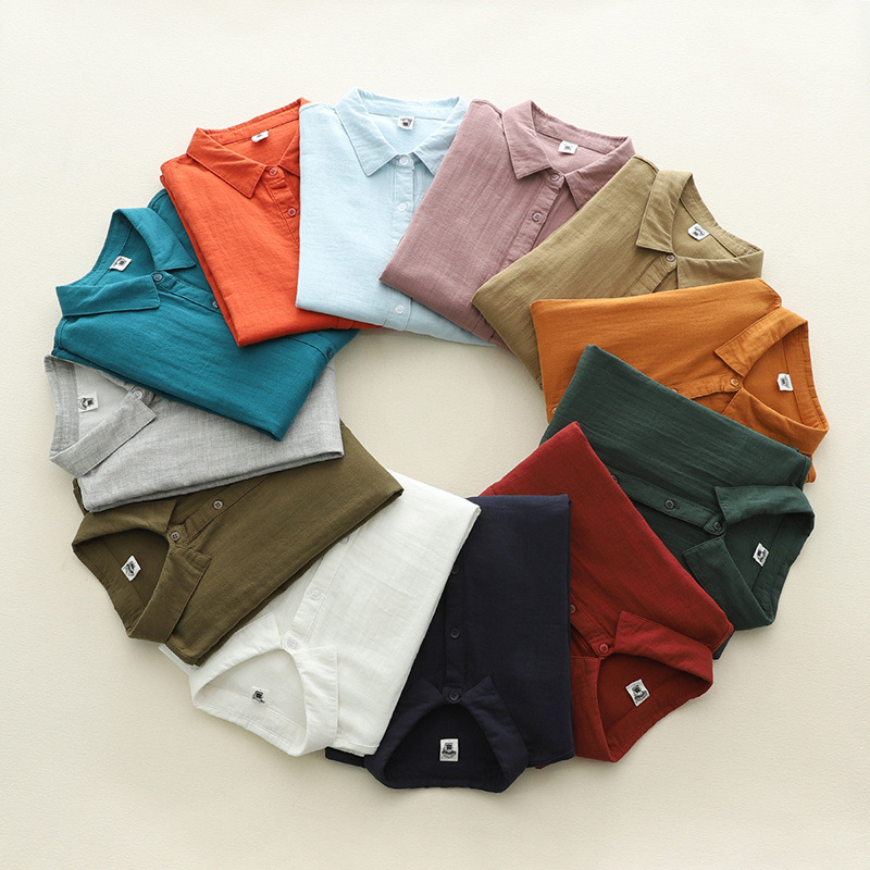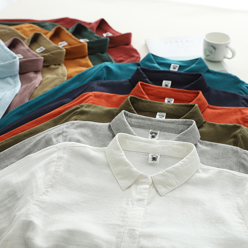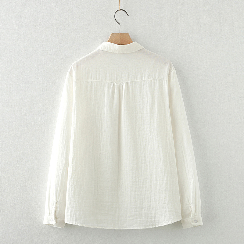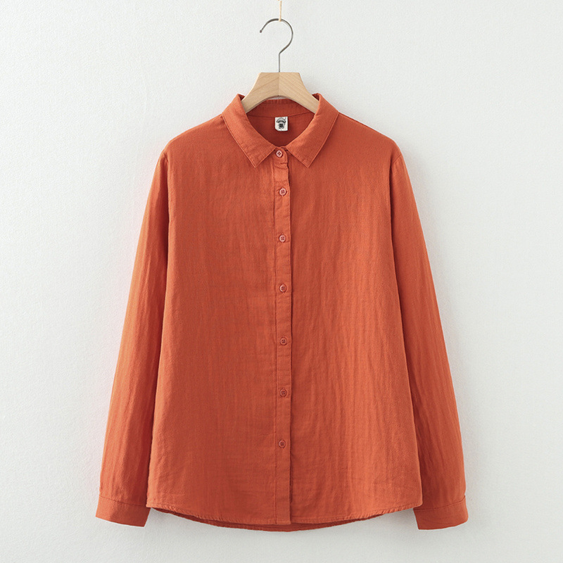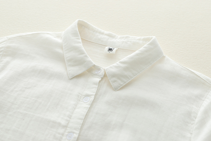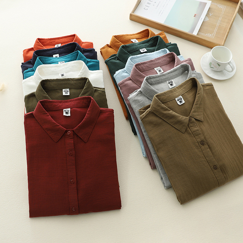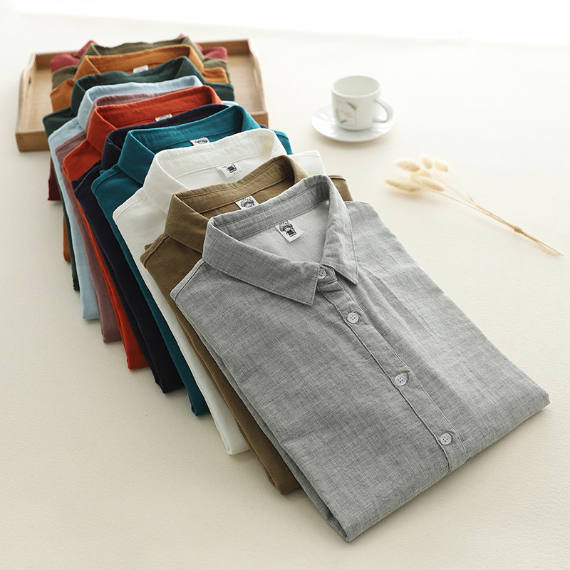 일본 더블 레이어 면사 셔츠 여성용 긴팔 솔리드 컬러 예술적 올 매치 여성용 소프트 셔츠 통근 도매스토어 가기