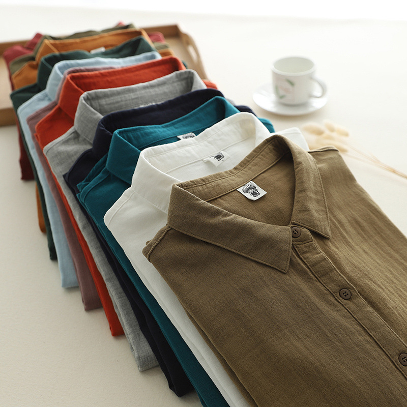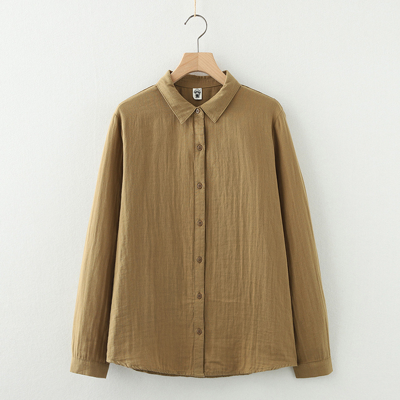 일본 더블 레이어 면사 셔츠 여성용 긴팔 솔리드 컬러 예술적 올 매치 여성용 소프트 셔츠 통근 도매