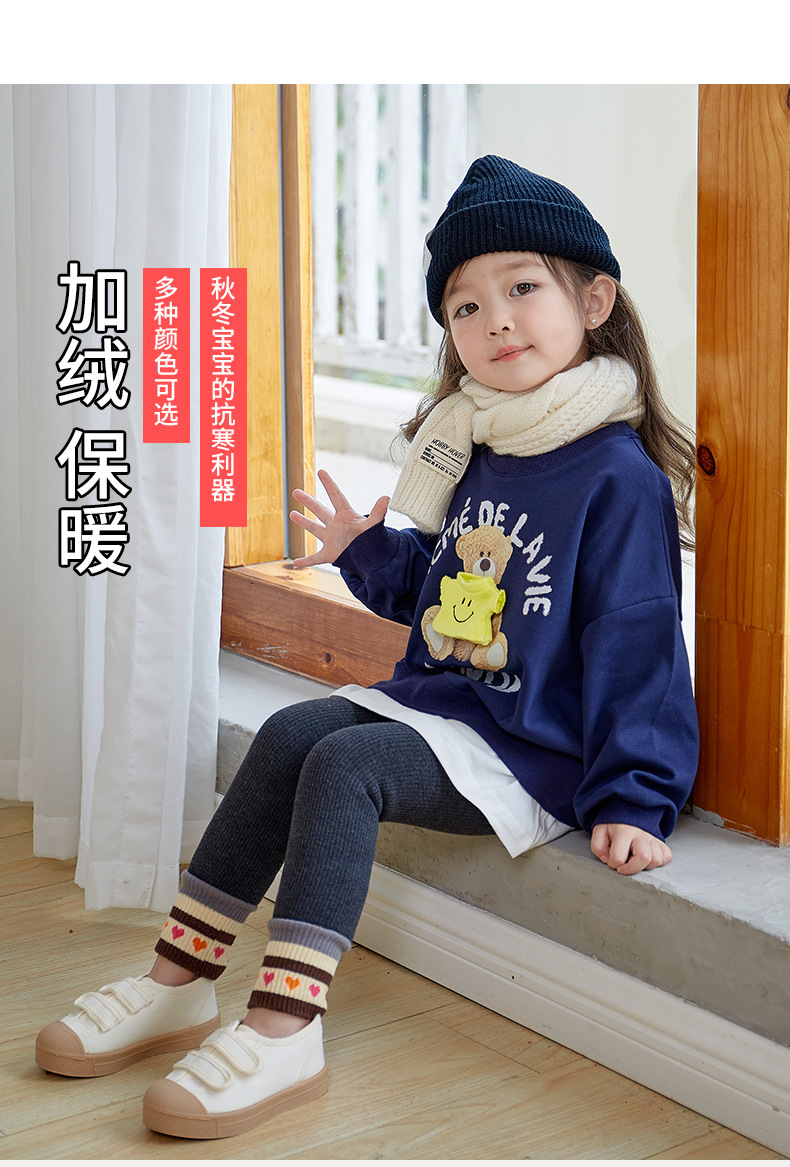 2022 겨울 어린이 레깅스 기모 두꺼운 어린이 아기 가랑이 넓은 줄무늬 발 사랑 바지스토어 가기