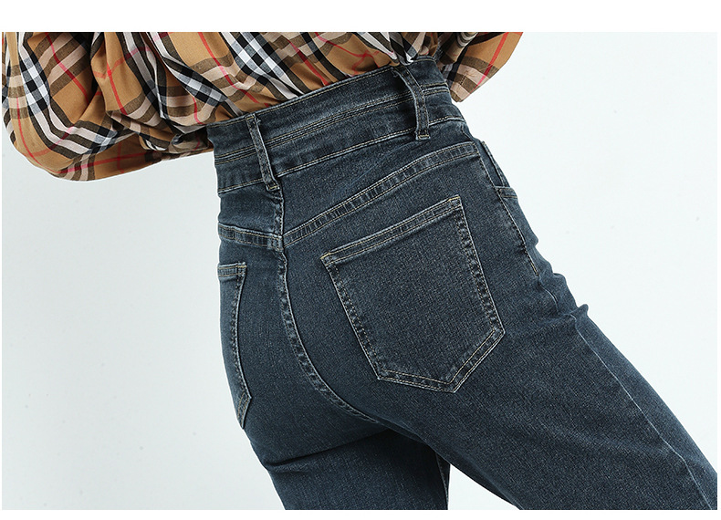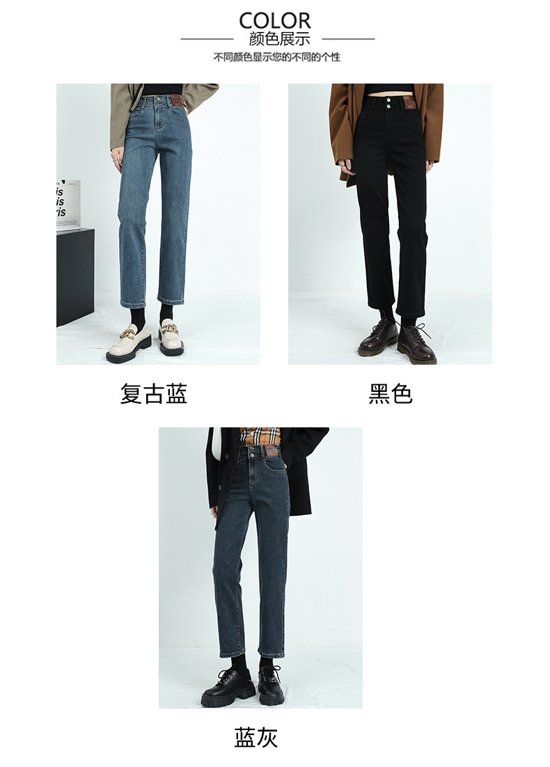 키 크고 슬리밍 크롭 스트레이트 청바지 여자의 가을 정사이즈 겨울 기모 스트레치 하이 웨이스트 연기 튜브 바지