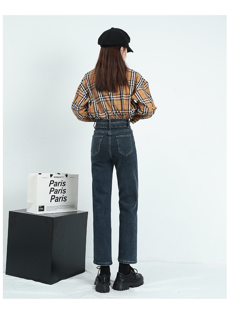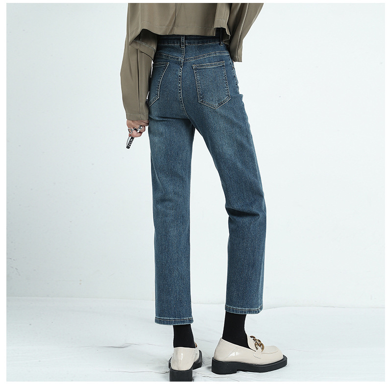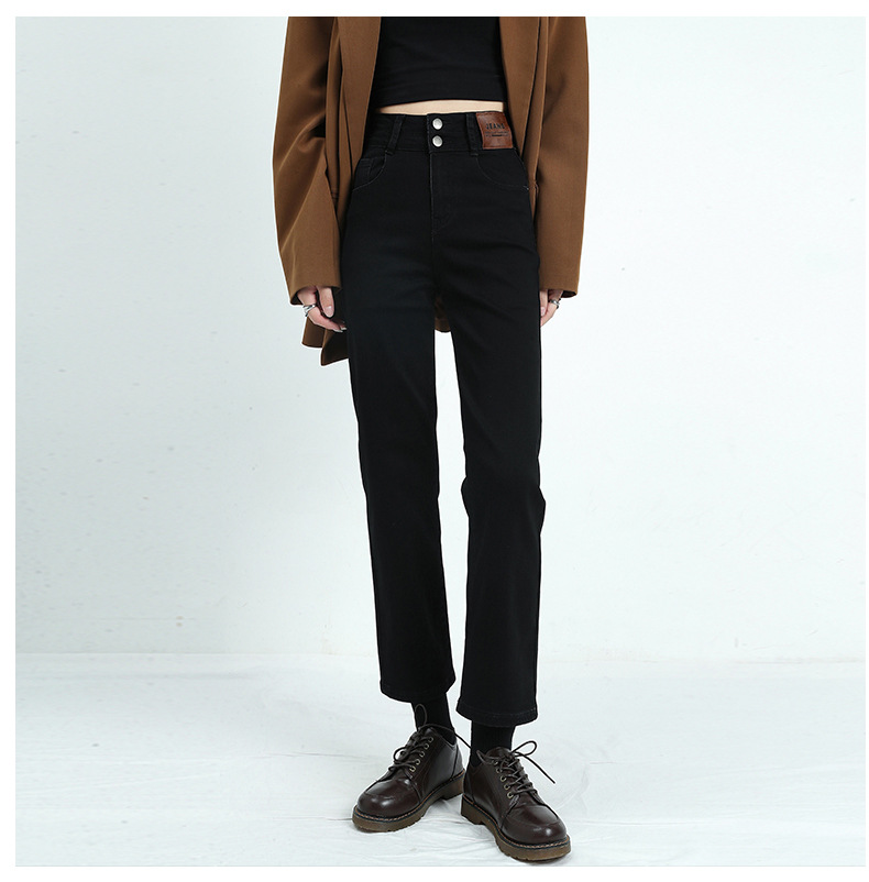 키 크고 슬리밍 크롭 스트레이트 청바지 여자의 가을 정사이즈 겨울 기모 스트레치 하이 웨이스트 연기 튜브 바지스토어 가기