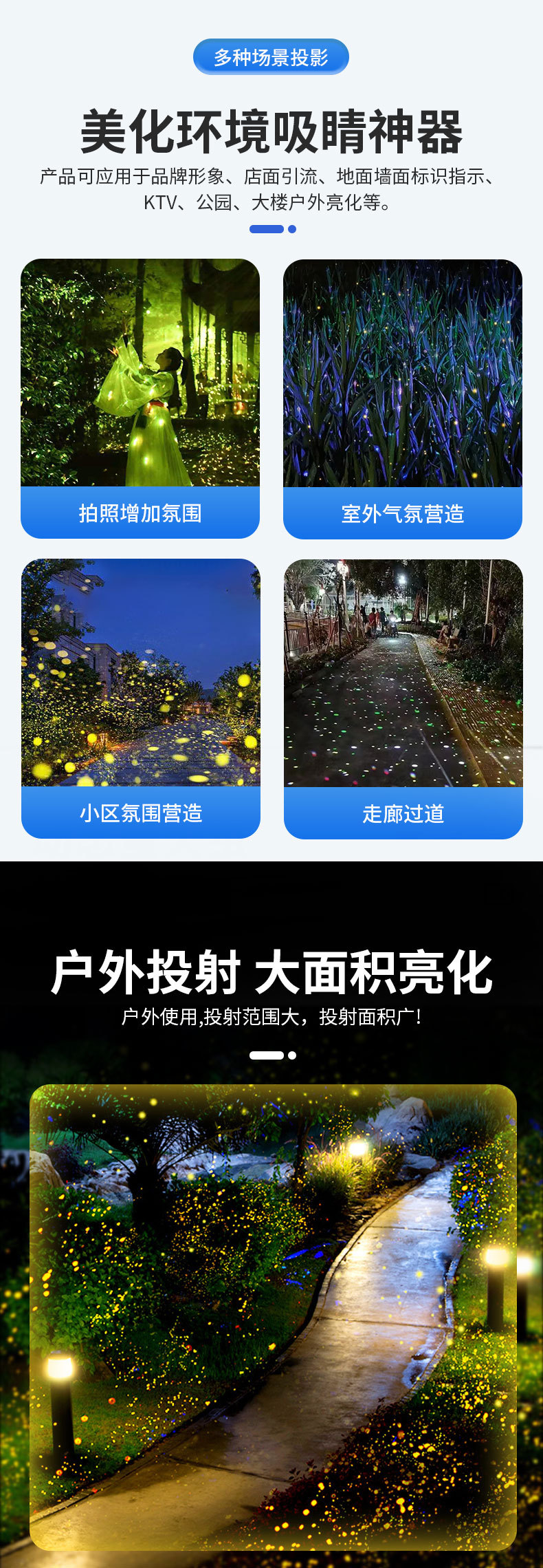 맞춤형 야외 레이저 반딧불 풀 컬러 레이저 별이 빛나는 하늘 프로젝션 램프 경치 좋은 공원 하늘 잔디 스포트라이트 방수
