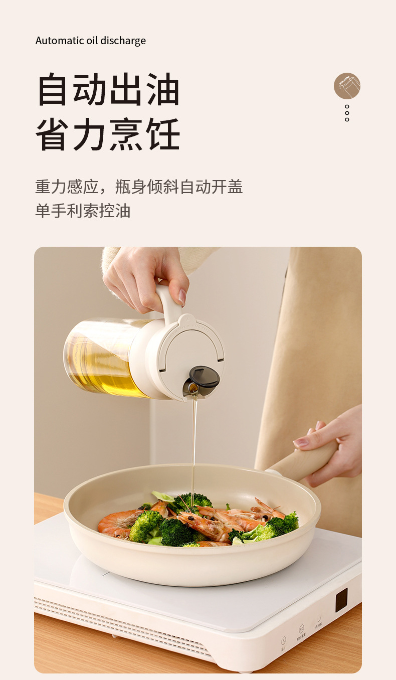 FaSoLa 유리 기름 냄비 가정용 주방 자동 개폐 대용량 기름 냄비 간장 식초 조미료 병 중력 기름 병스토어 가기