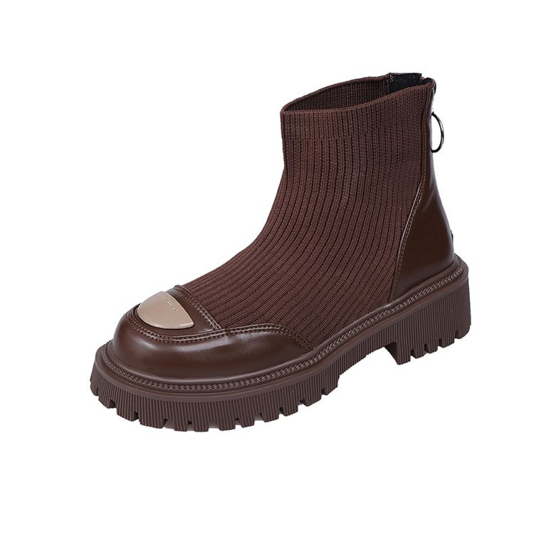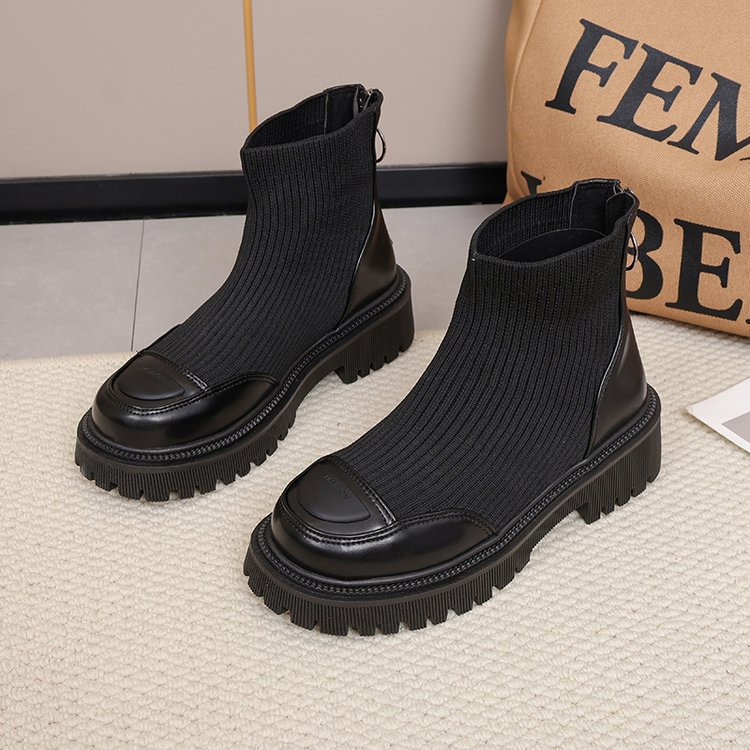 가을 2023 새로운 한국 스타일 두꺼운 밑창 스트레치 양말 부츠 여성용 두꺼운 굽 짧은 플라이 니트 얇은 부츠스토어 가기