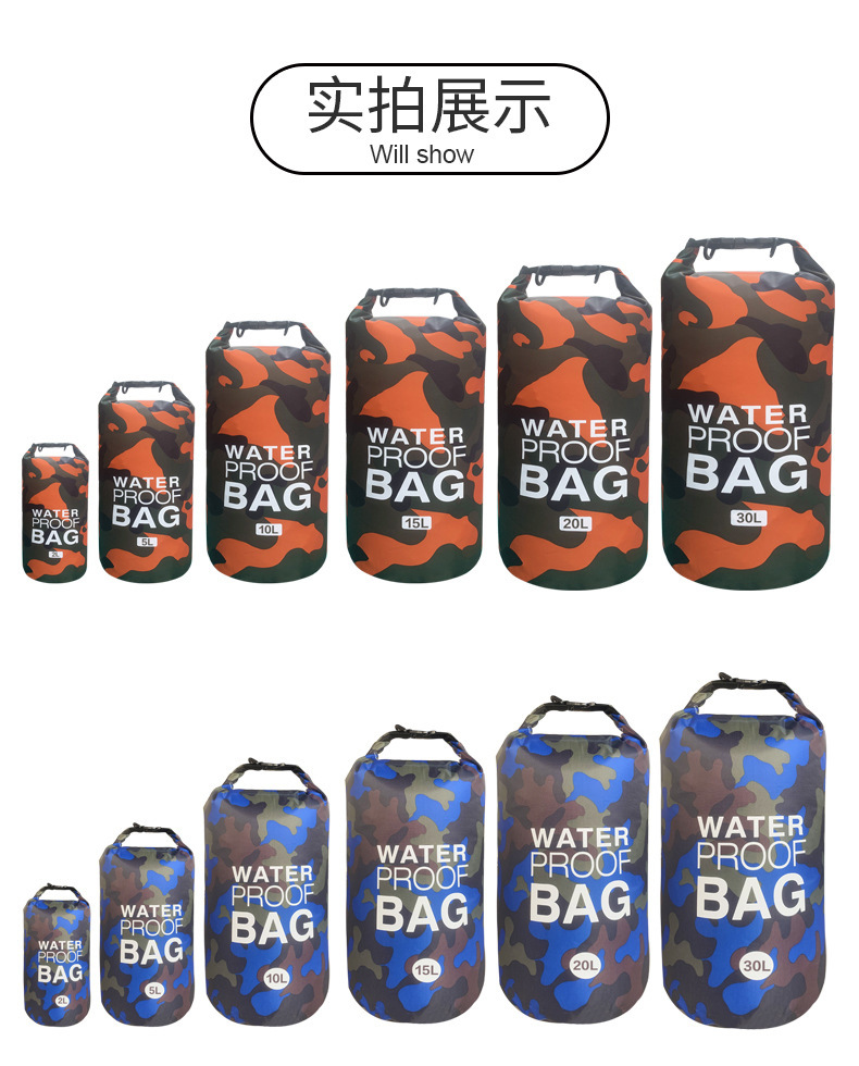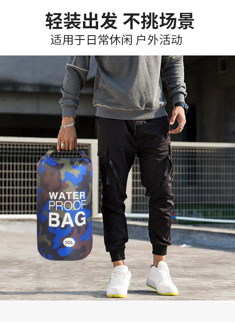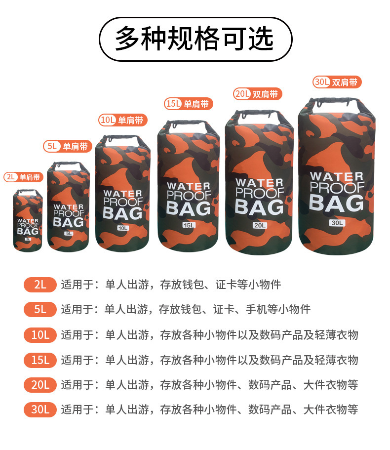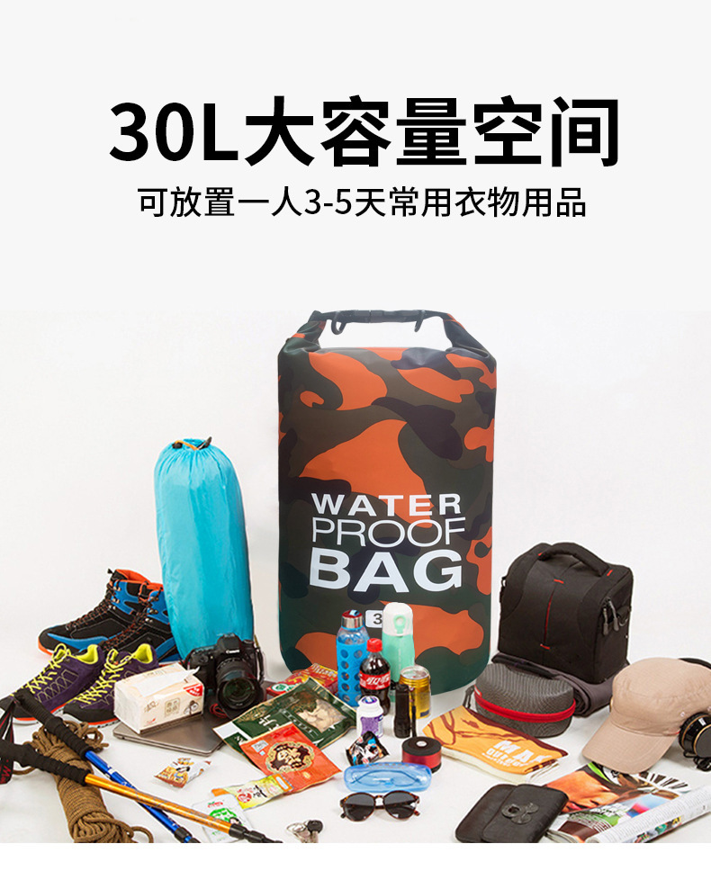 카모플라주 방수 가방, 싱글/더블 숄더 방수 버킷백, 폴리에스터 래프팅 가방, 수납 백팩, 캐주얼하고 내구성 있는 아웃도어용스토어 가기