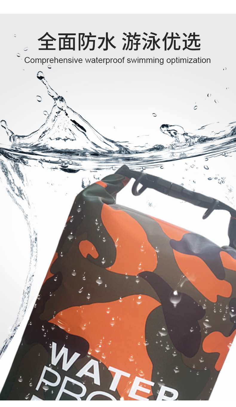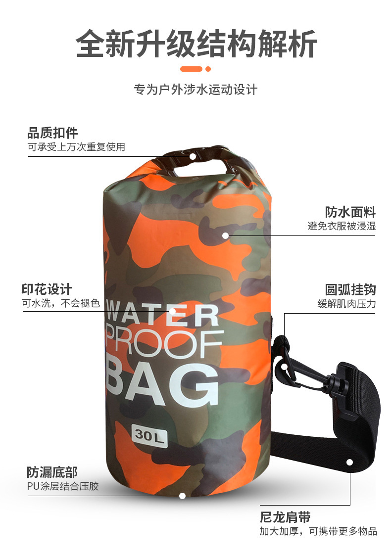 카모플라주 방수 가방, 싱글/더블 숄더 방수 버킷백, 폴리에스터 래프팅 가방, 수납 백팩, 캐주얼하고 내구성 있는 아웃도어용