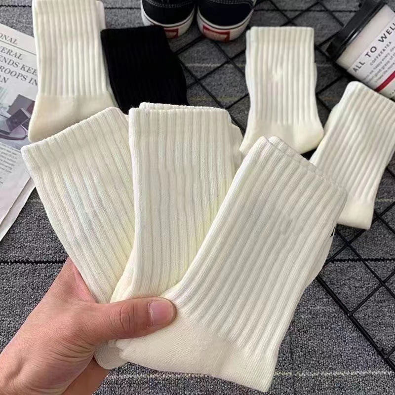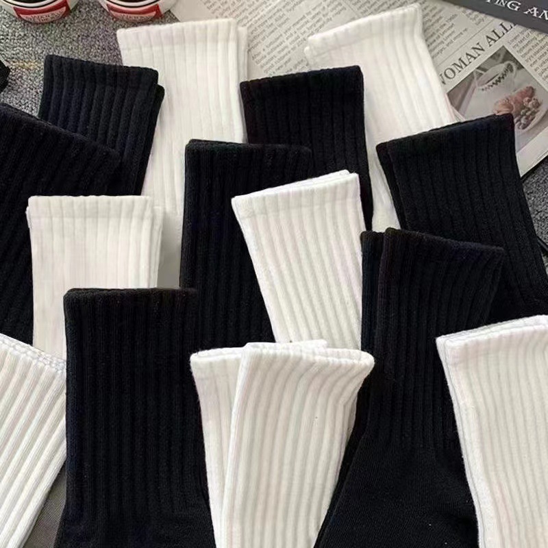 양말 여성용 세로 스트립 미드 튜브 양말 흑백 봄과 가을 스타킹 탈취제 땀 흡수성 통기성 스포츠 여성용 유행 양말