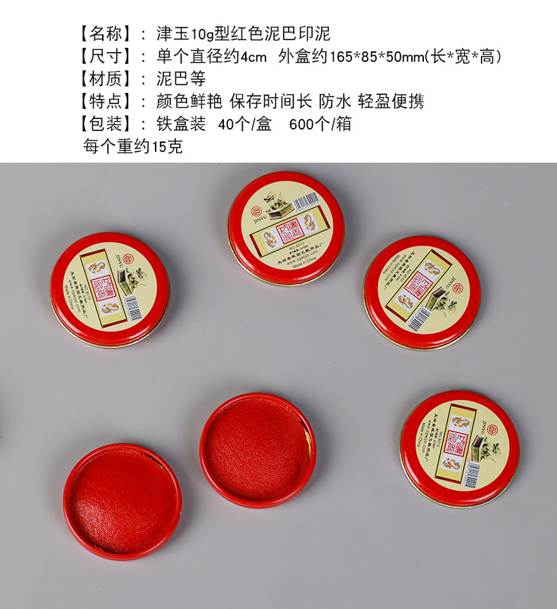 Jinyu 10g 잉크 패드 미니 초소형 직경 4cm 포켓 레드 라운드 철 상자 진흙 잉크 패드 레드 씰
