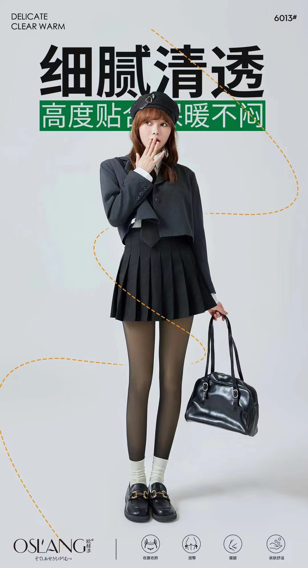 Ouslang 6013 피부 투명 바지 블랙 실크 기모 플러스 파일 여신 두껍게 300g 피부 투명 6014 바닥 양말